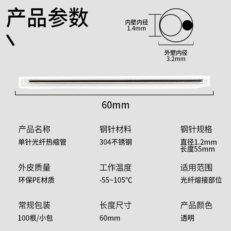 产品名称:光纤热缩管 60mm护纤管裸纤细管 热熔管 钢针光纤管 光纤热缩套管