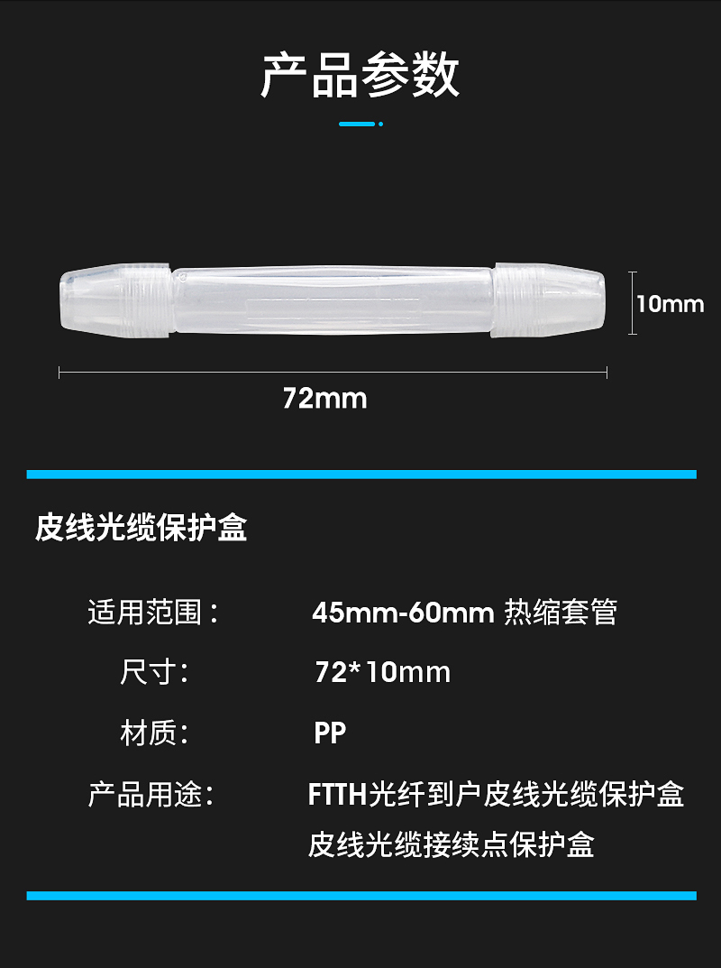 产品名称:新款光纤热缩管保护盒皮线护纤盒光纤熔接盒跳线保护盒 黑色/透明