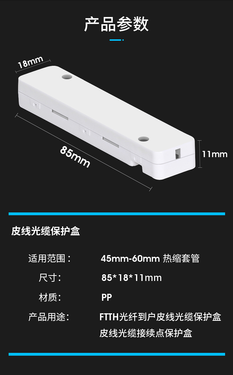产品名称:皮线光缆保护盒 热缩管保护盒 护纤盒 光纤熔接盒 皮线光纤保护盒
