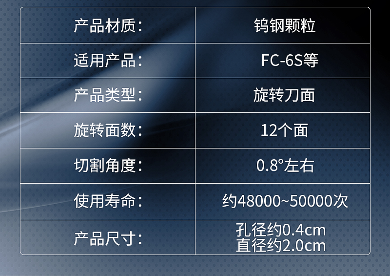 适用范围:适用FC-6S AUA-60S SKL-60S SKL-S1 AUA-S1切割刀使用。