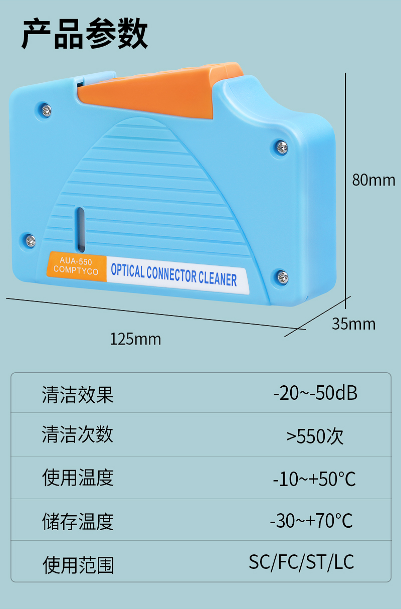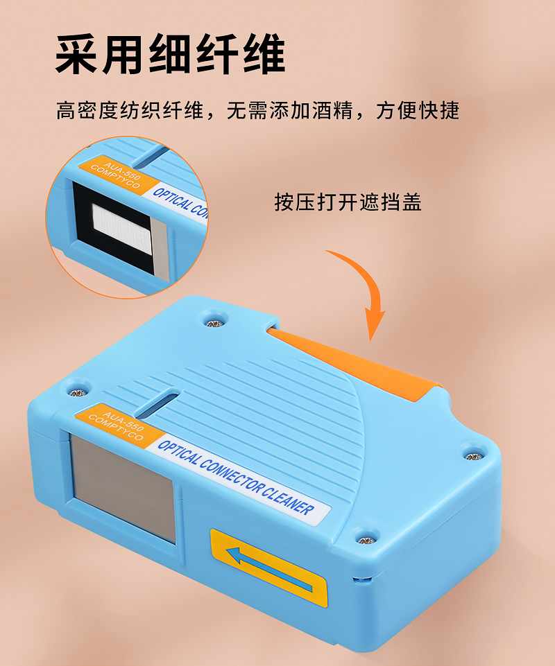 产品名称:康普泰光纤清洁盒AUA-550卡带式光纤跳线端面清洁器擦纤器非光纤清洁笔棒可替换带芯 蓝/白/绿/红色