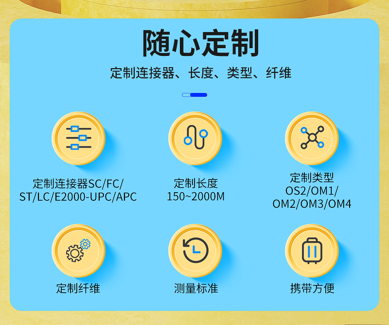 注:定制长度150M 300M 500M 1000M 2KM ,延长线接头任选:MU、E2000、SC/FC/LC/ST(UPC或APC))厂家直销,出口标准,价格优惠.