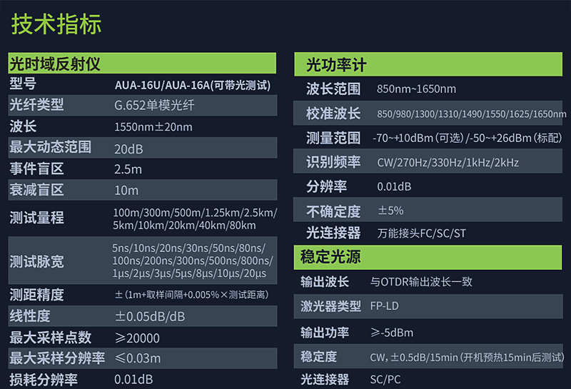 产品名称:COMPTYCO 康普泰AUA-16U/16A迷你OTDR光时域反射仪可带光测光纤测试仪UPC/APC