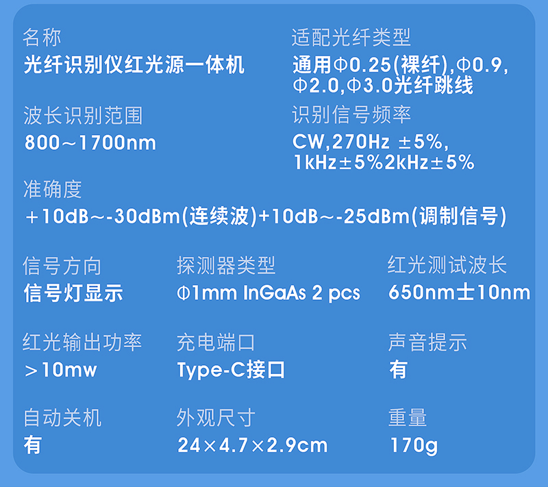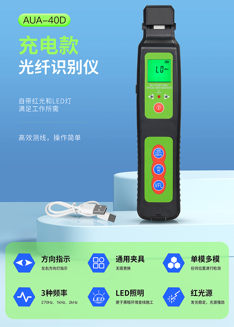 产品名称:康普泰 光纤信号识别仪识别器AUA-40D 10MW红光源一体机 充电款