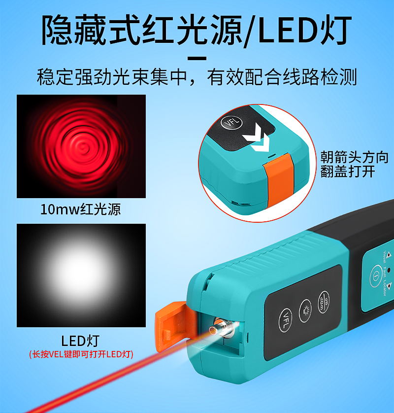 产品名称:康普泰 干电池款AUA-40光纤信号识别仪识别器带10MW红光源一体机
