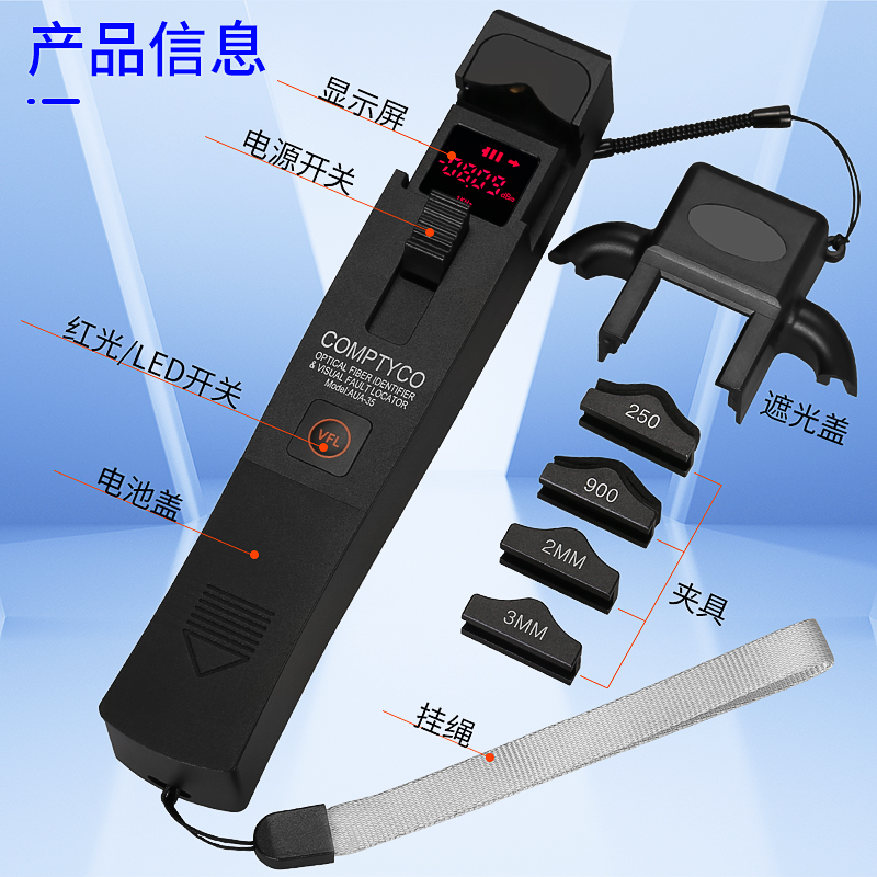 产品名称:COMPTYCO AUA-35光纤信号识别仪带10公里红光源一体机LED灯金属材质 干电池款