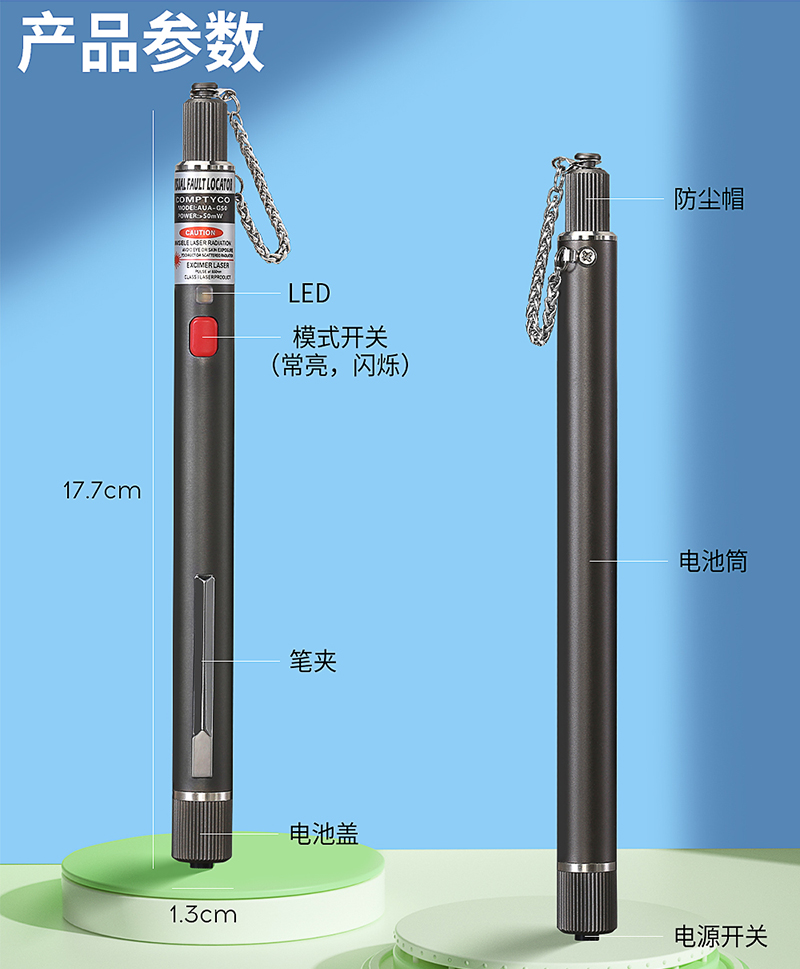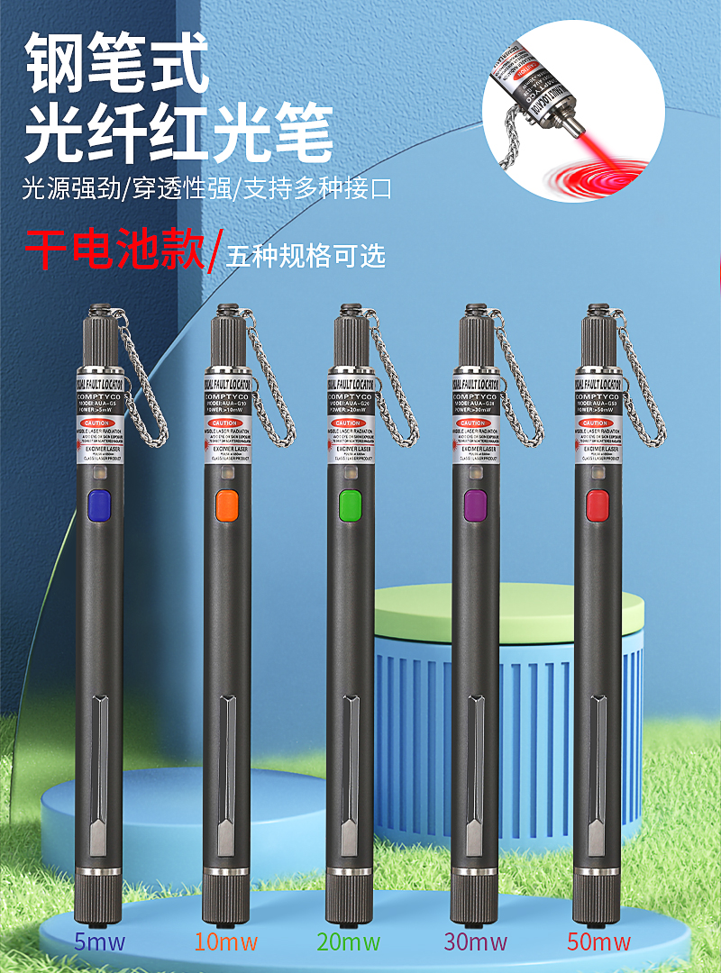 产品名称:COMPYCO 康普泰干电池款钢笔式1-30公里红光笔通光笔光纤打光笔红光源5-50MW