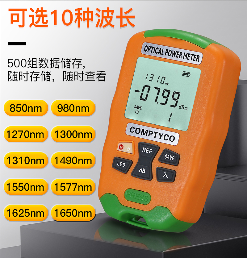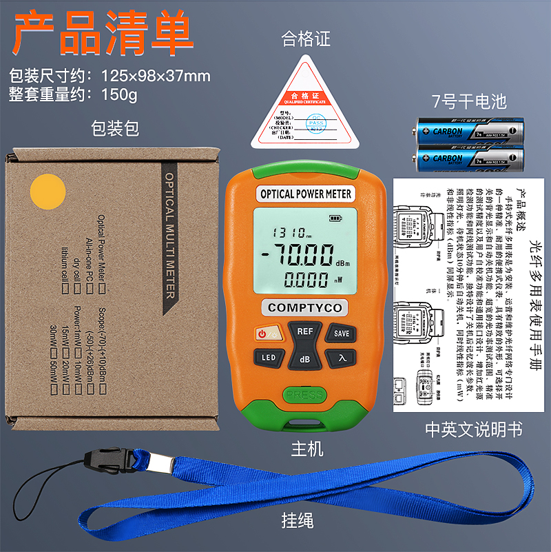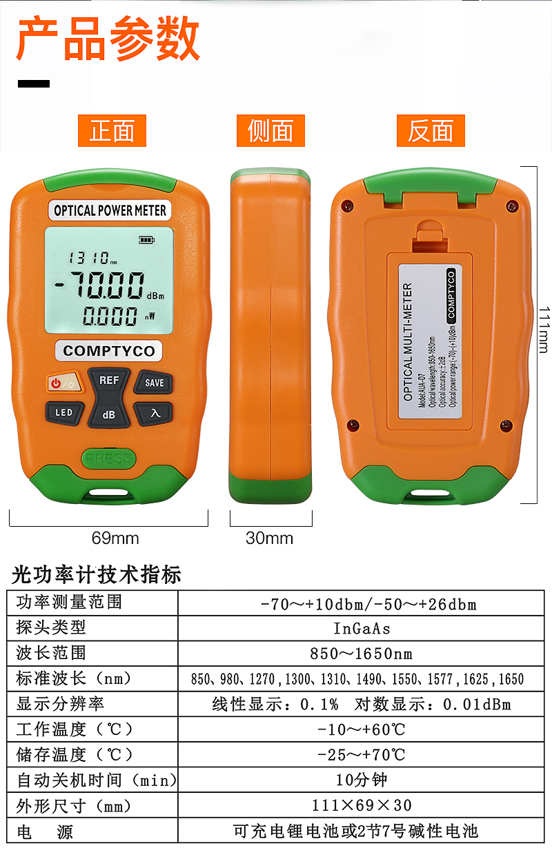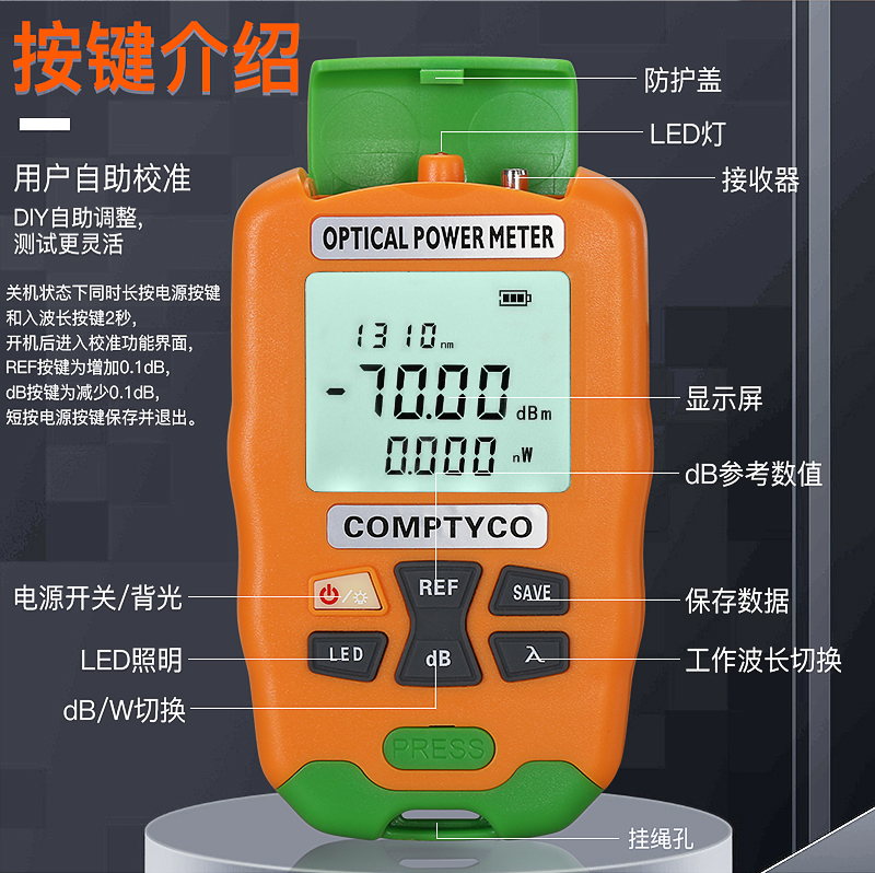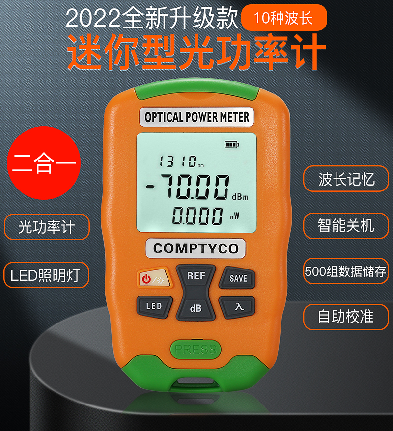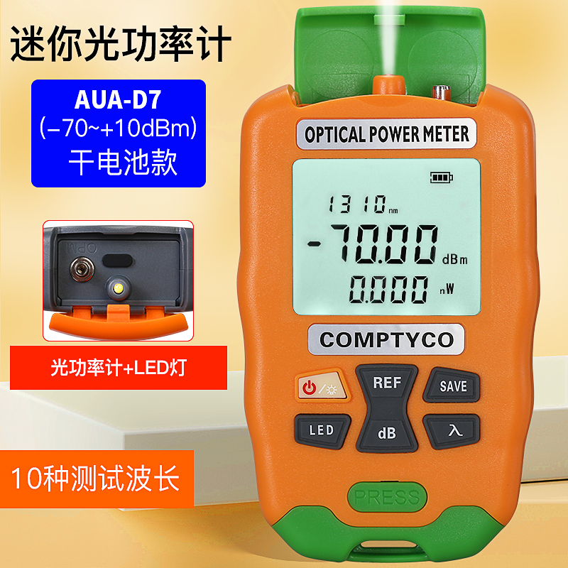 产品名称:COMPTYCO 康普泰 干电款 迷你光功率计+LED灯 二合一光纤测试仪10波长 AUA-D7/D5