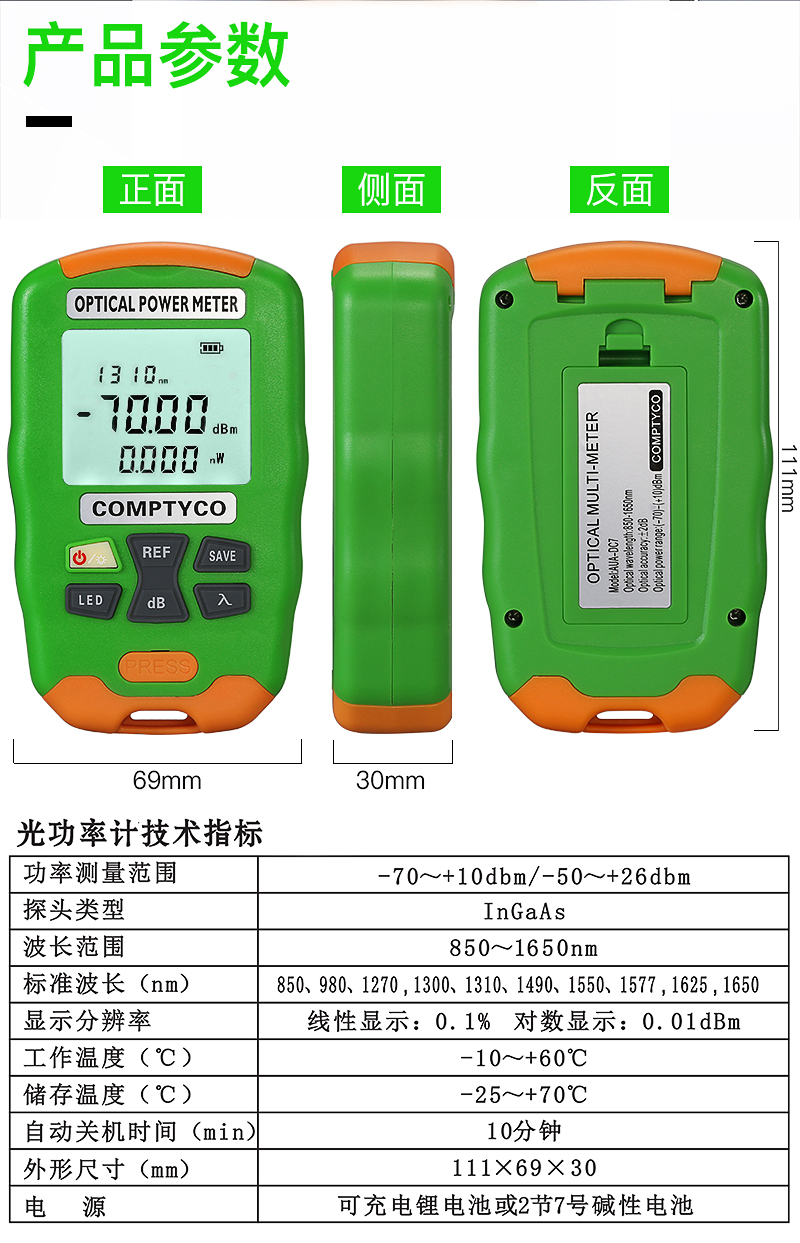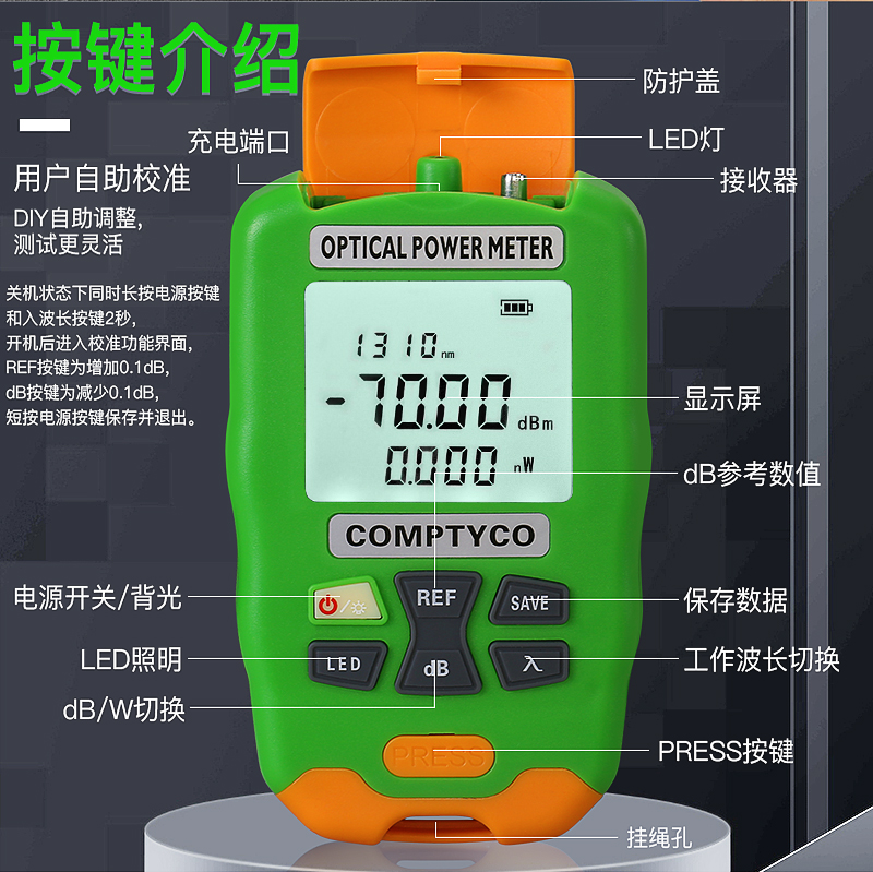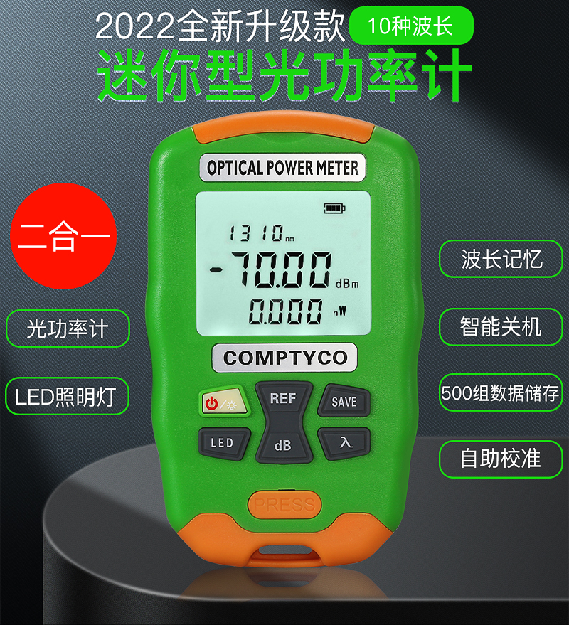 产品名称:COMPTYCO 康普泰 迷你光功率计+LED灯 二合一光纤测试仪AUA-DC7/DC5 10波长 充电款