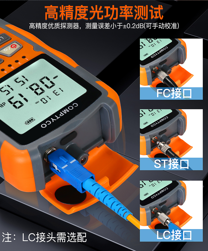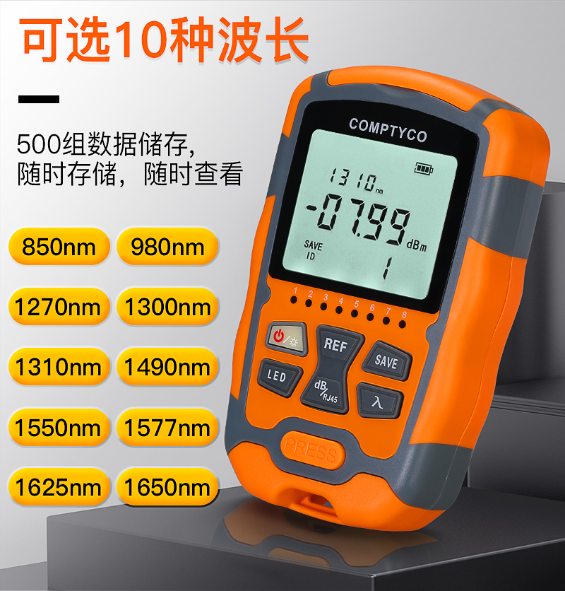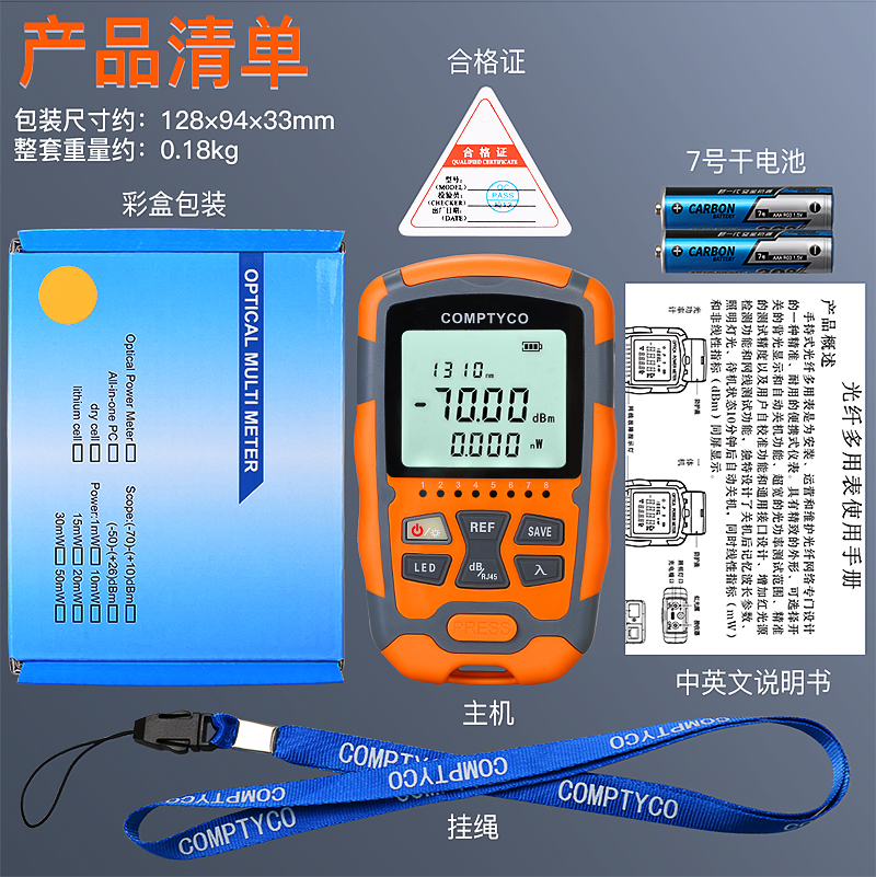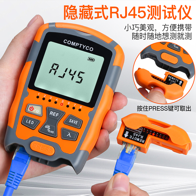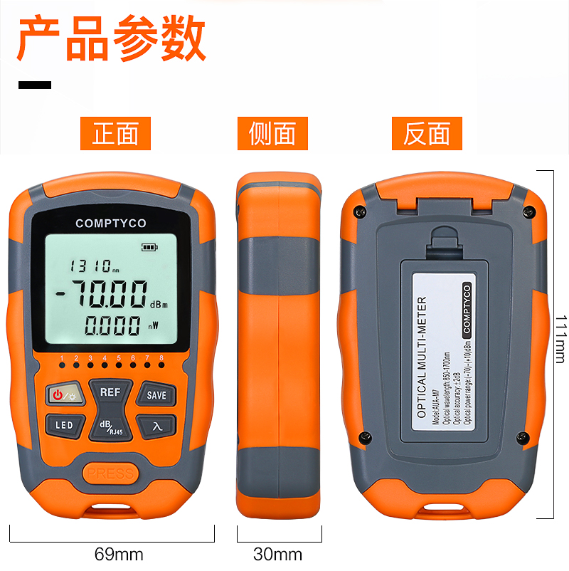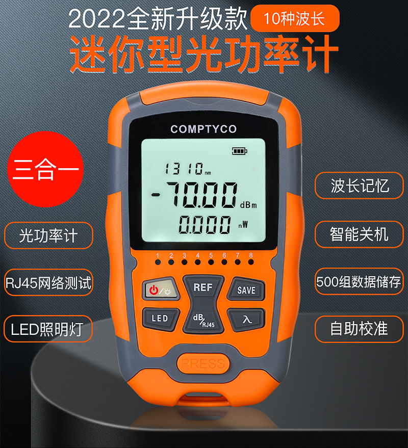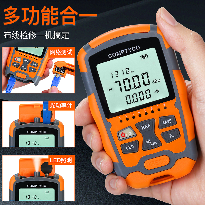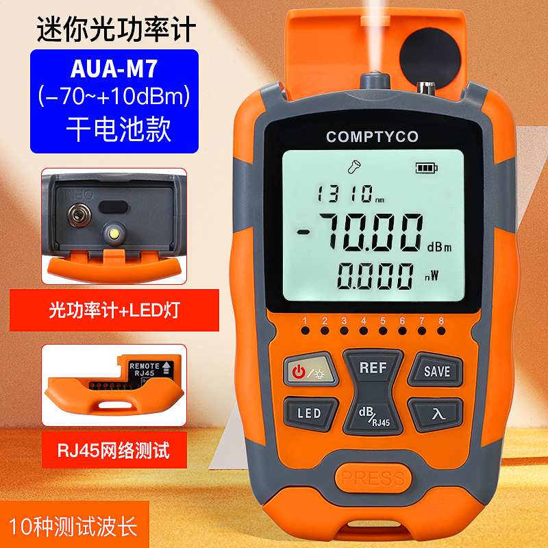 产品名称:COMPTYCO 康普泰高精度AUA-M7/M5迷你光功率计LED RJ45三合一光纤网线测试仪-70~+10dBm 干电款