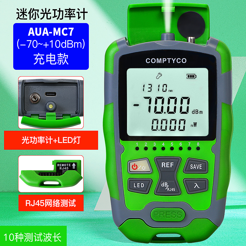 产品名称:COMPTYCO 康普泰AUA-MC7/MC5充电款 高精度迷你光功率计三合一RJ45光纤网线测试仪带LED灯