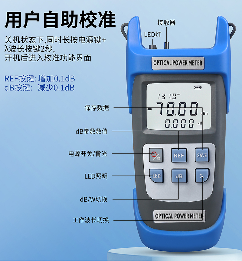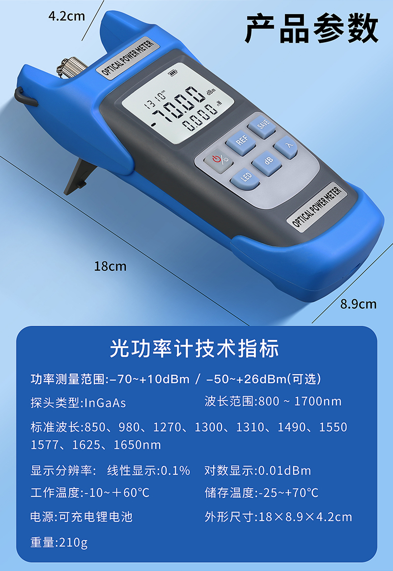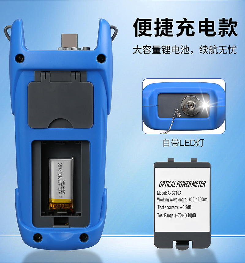 产品名称:COMPTYCO 康普泰 高精度光功率计A-C710A/C510A光衰测试仪纤检测仪 -70~+10/-50~+26dBm 充电款