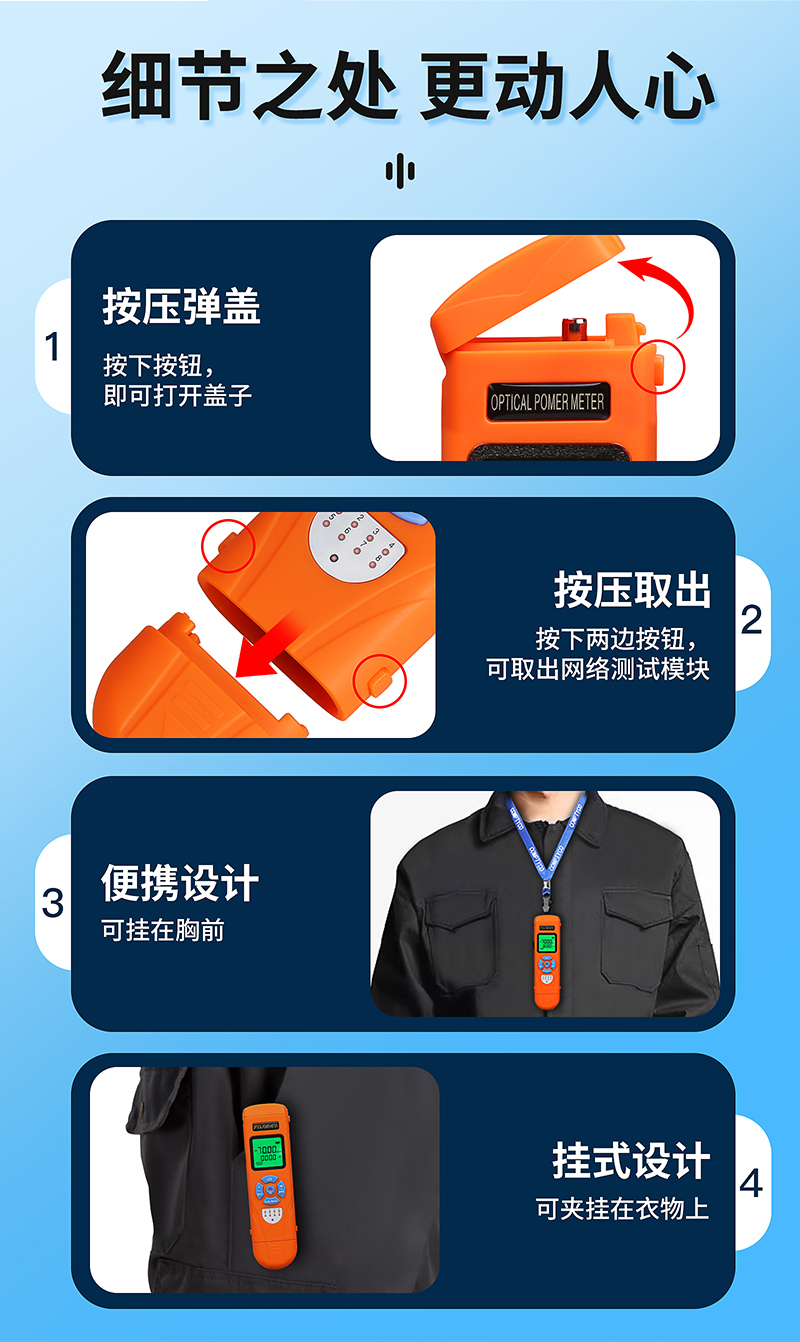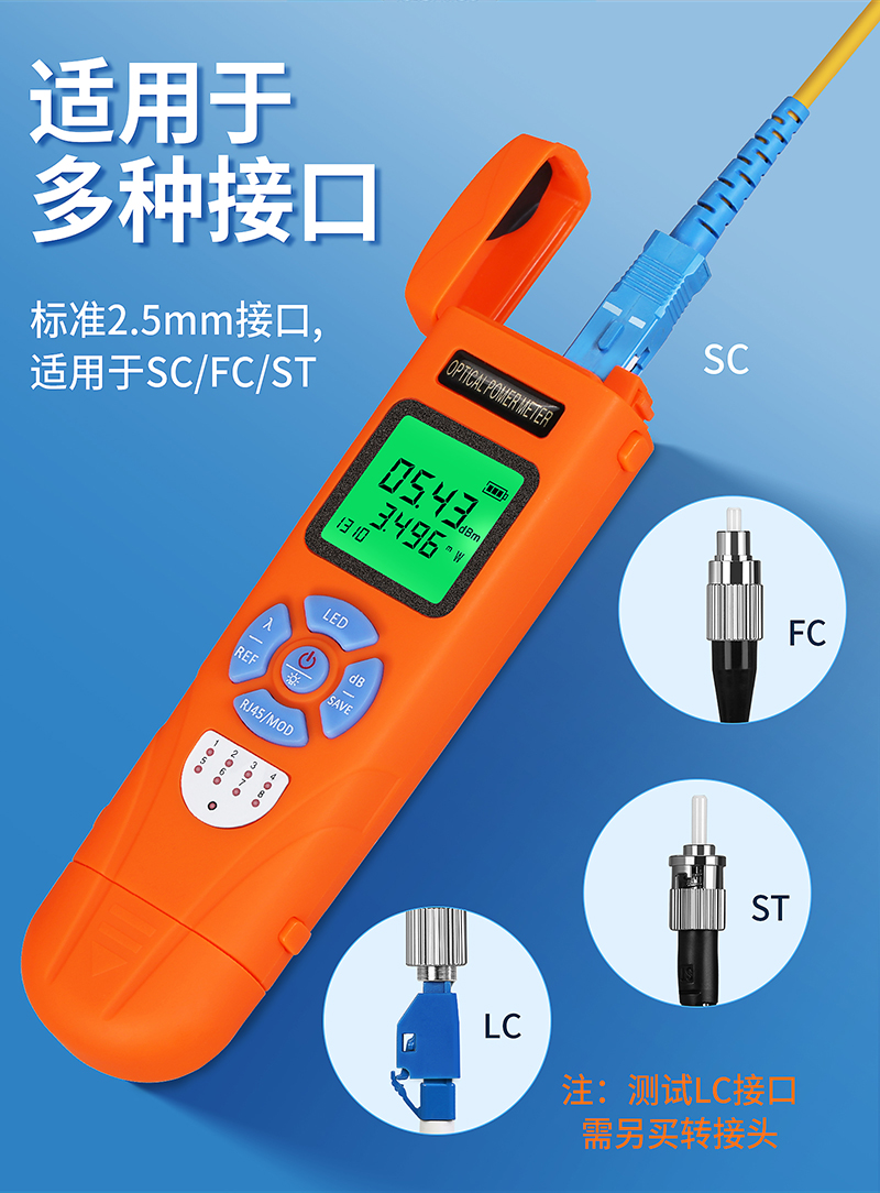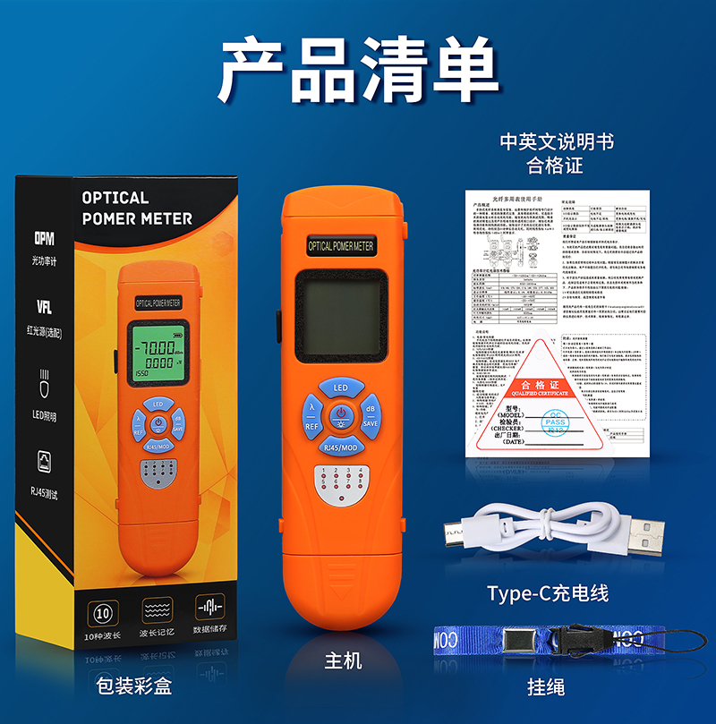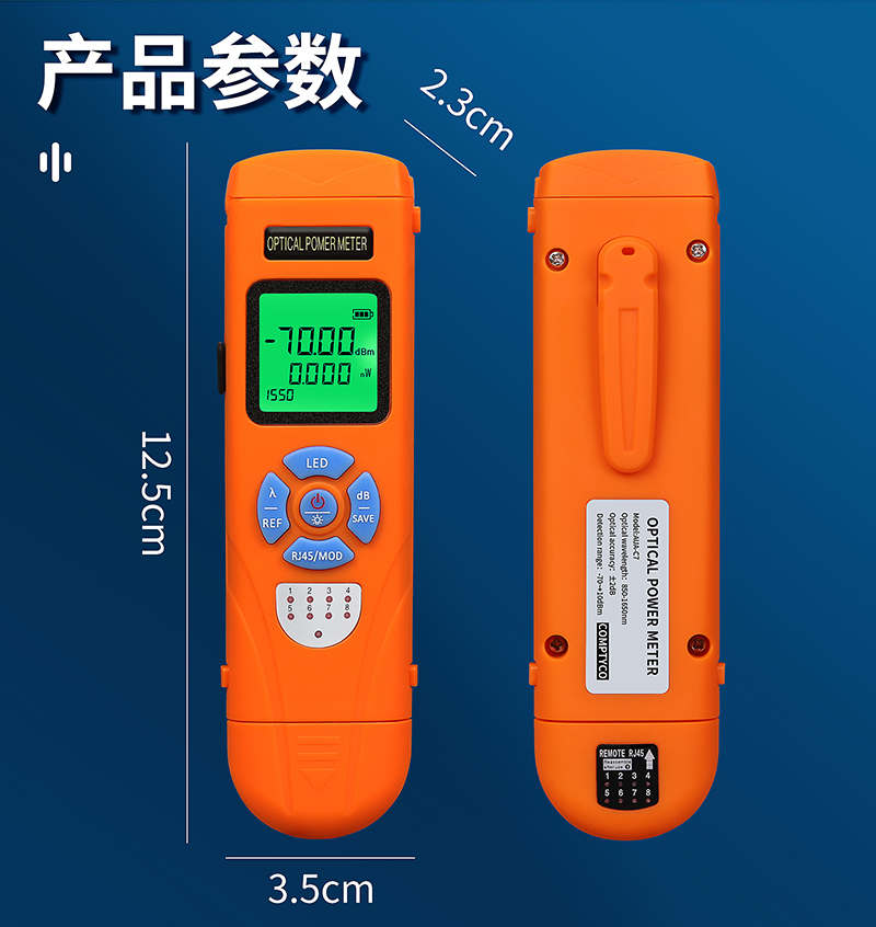 产品名称:COMPTYCO AUA-C7/C5充电高精度迷你光功率计光纤测试仪OPM带LED和RJ45测试仪-70~+10dBm 充电款