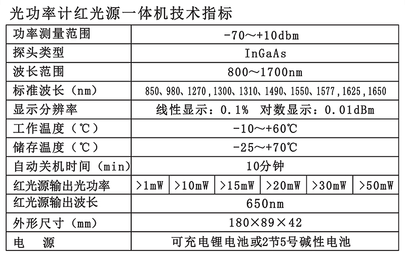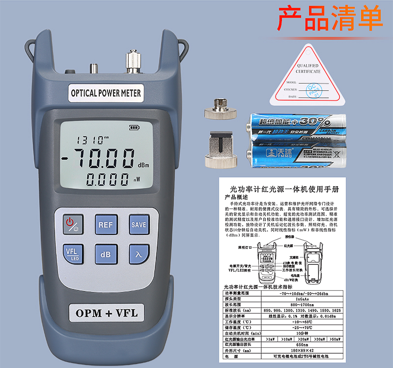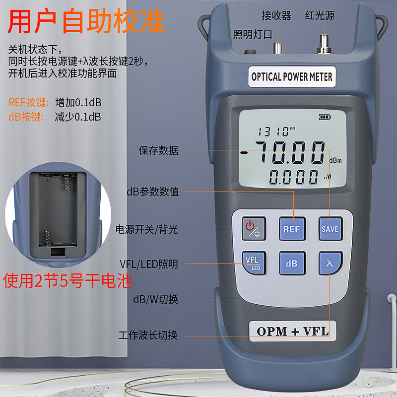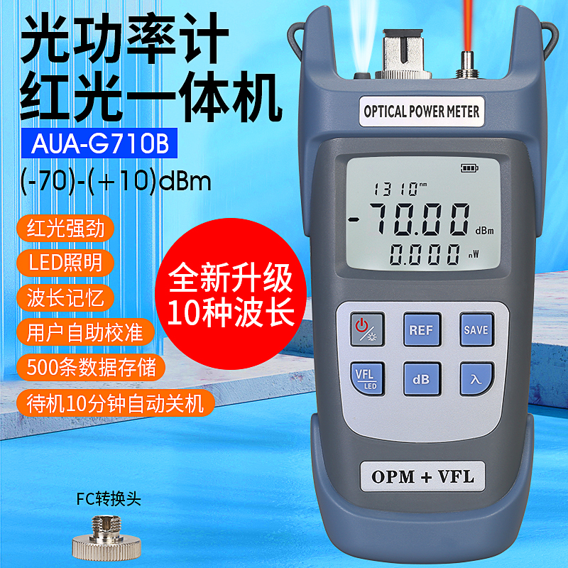 产品名称:COMPTYCO 康普泰 干电款 高精度光功率计红光源一体机带LED灯AUA-G710B/G510B 1-50MW