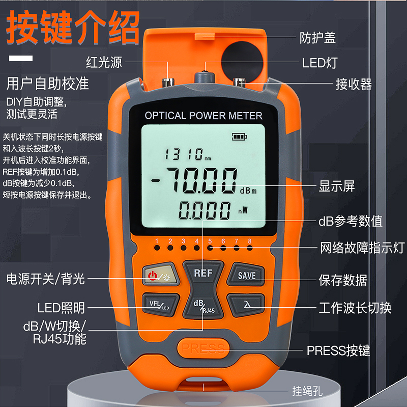 产品名称:COMPTYCO 康普泰 干电款 高精度迷你光功率红光一体机AUA-M70/M50 LED+RJ45网络测试 1-50MW可选