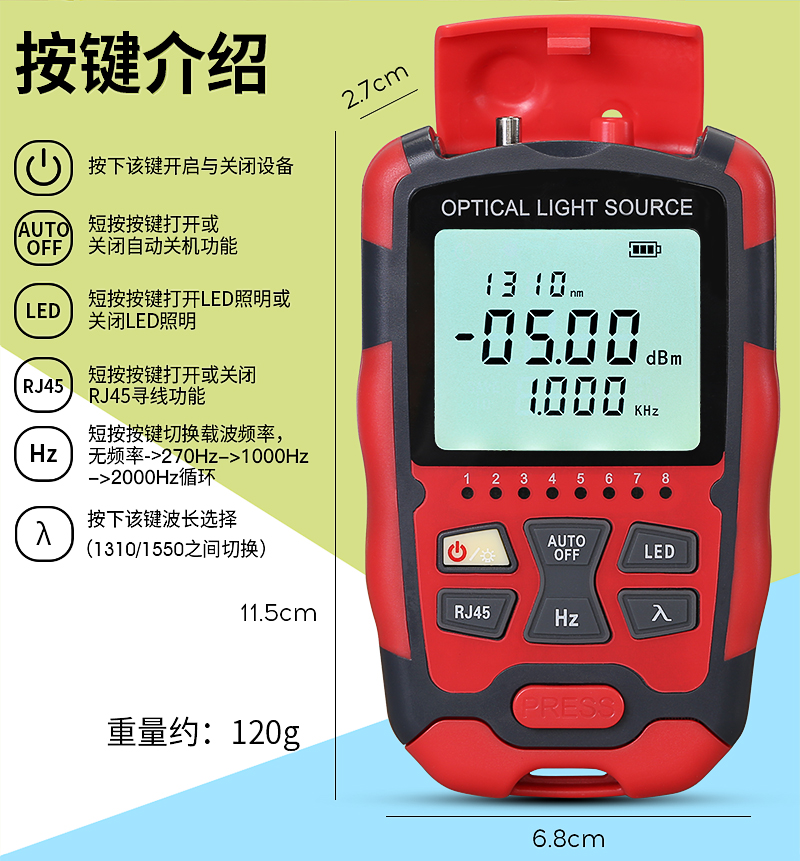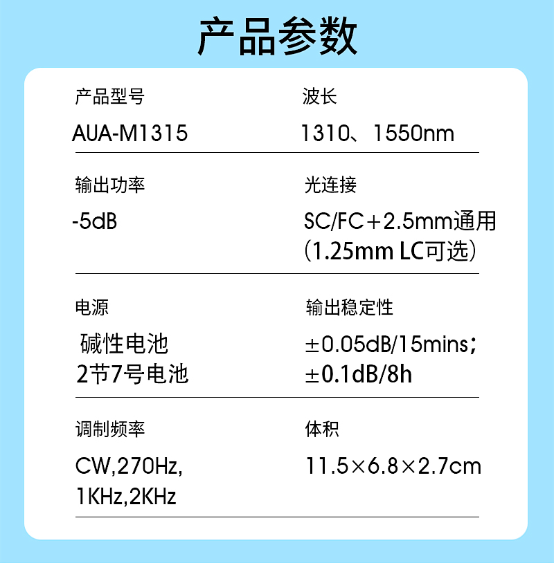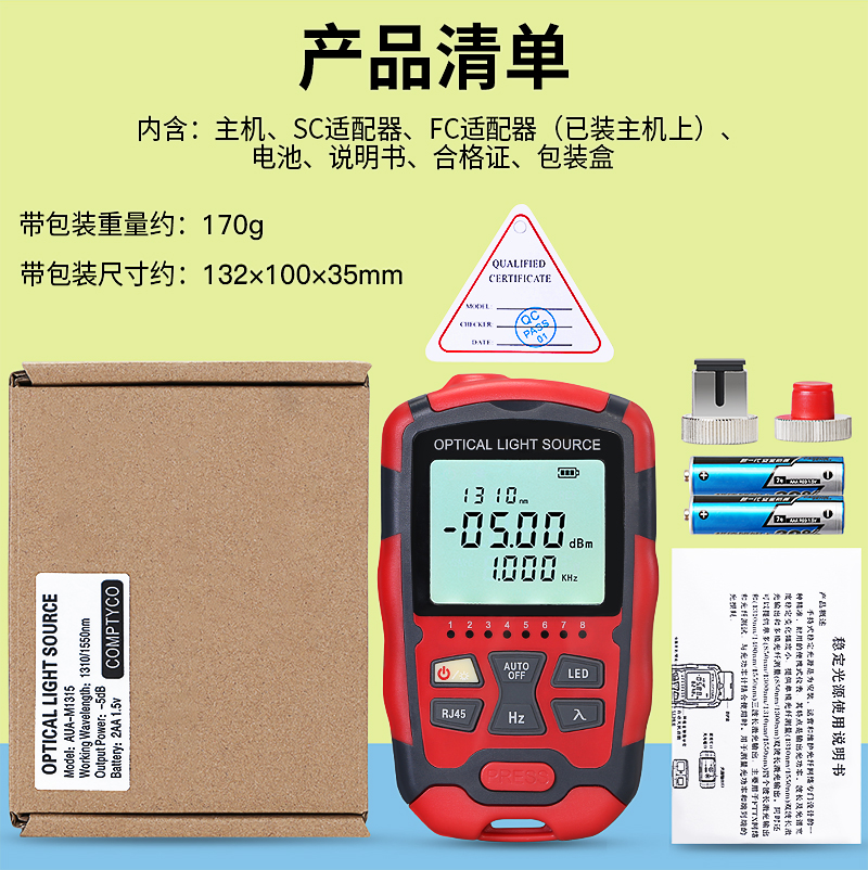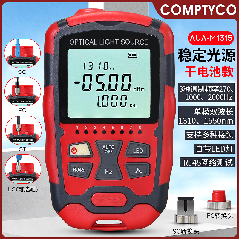 产品名称:COMPTYCO 康普泰光纤稳定光源AUA-M1315 手持式3合1激光源光功率发射源RJ45测试 干电款
