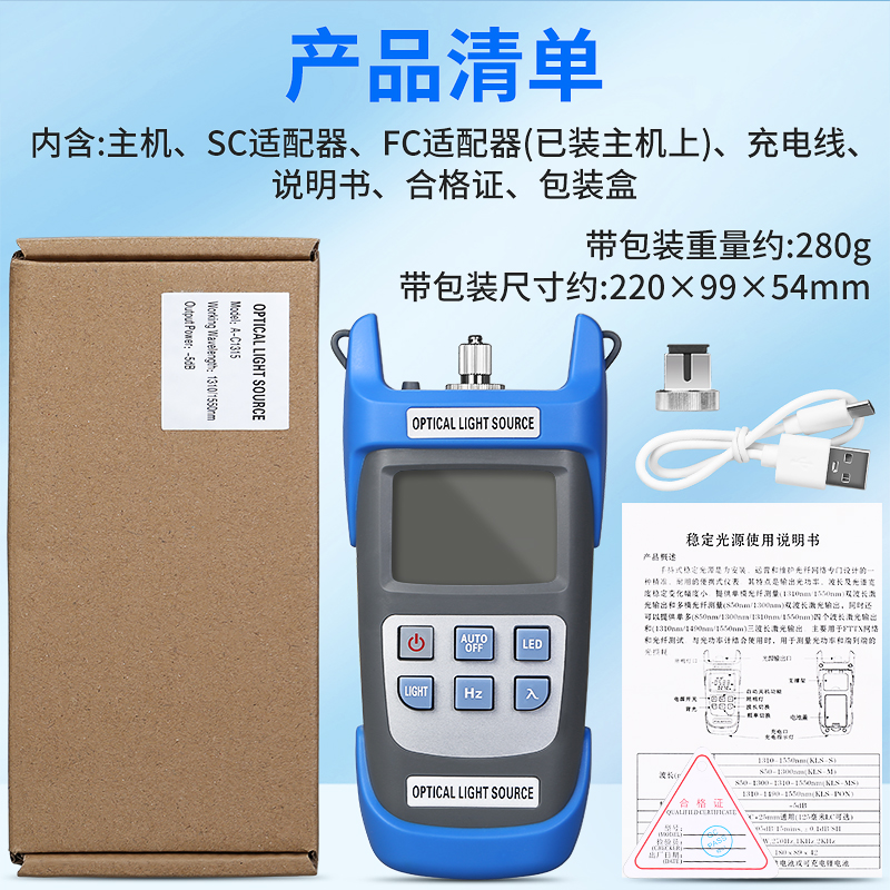 产品名称:COMPTYCO 康普泰 充电款A-C1315光纤稳定光源光功率计发射激光光源单模双波长1310/1550nm