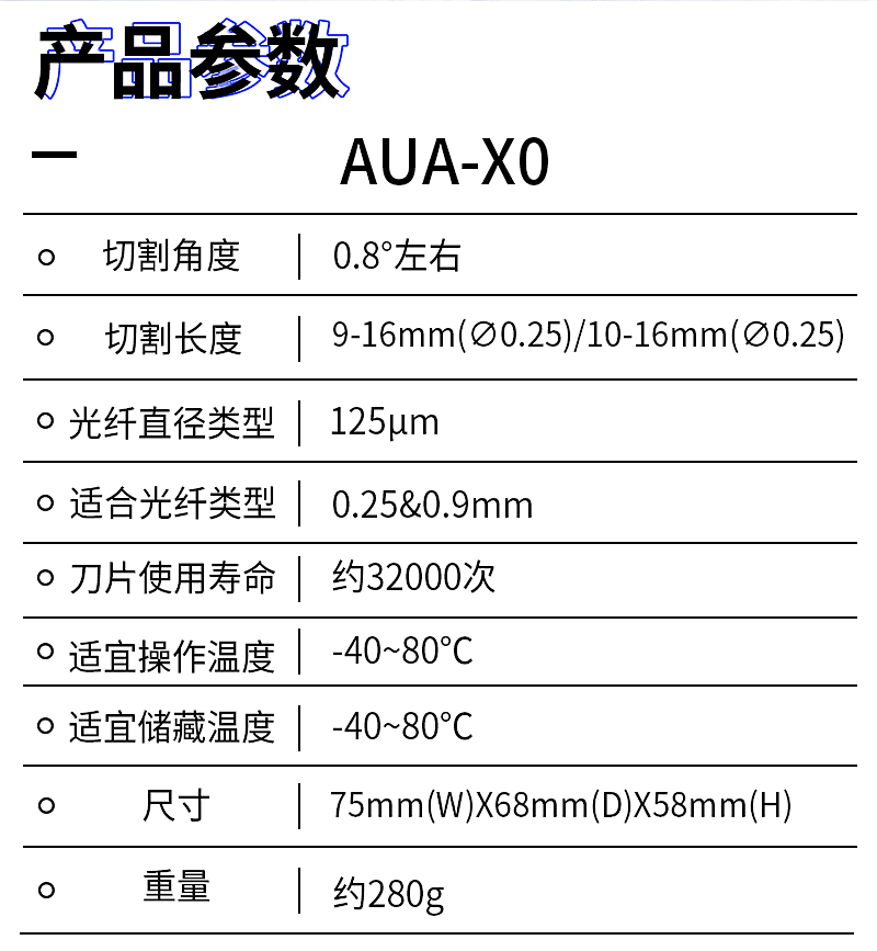 产品名称:COMPTYCO 高精度光纤切割刀AUA-X0 光缆熔接机热熔切刀自动回刀16点面刀片冷接热熔