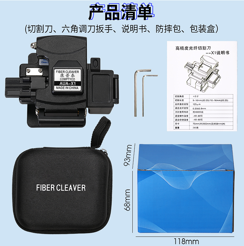 产品名称:COMPTYCO 康普泰AUA-X1高精度光纤切割刀光缆切割器光纤熔接机割刀带废纤盒 热熔冷接款