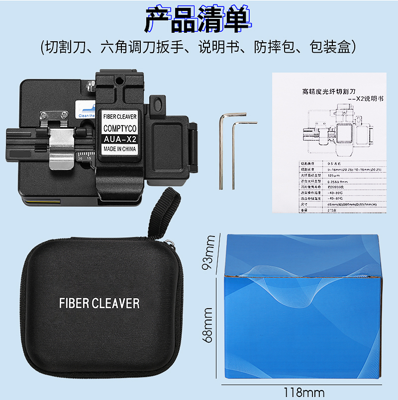 产品名称: 康普泰 高精度光纤切割刀AUA-X2 热熔冷接自动回刀切割机器光纤熔纤机熔接机全自动光纤冷接工具套装切割平不断纤