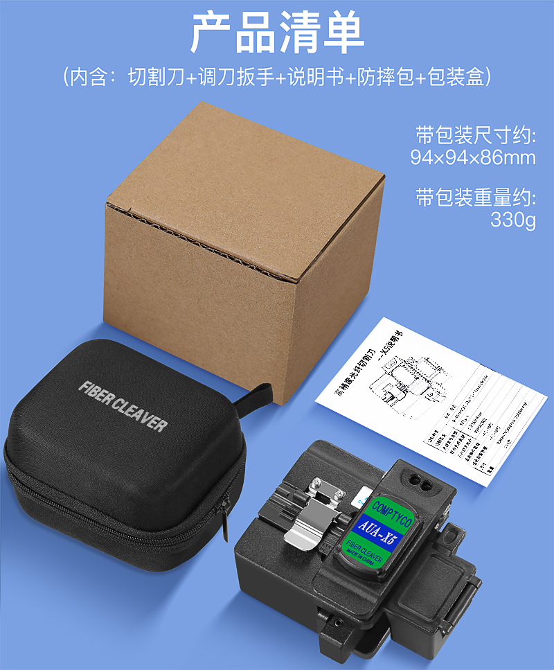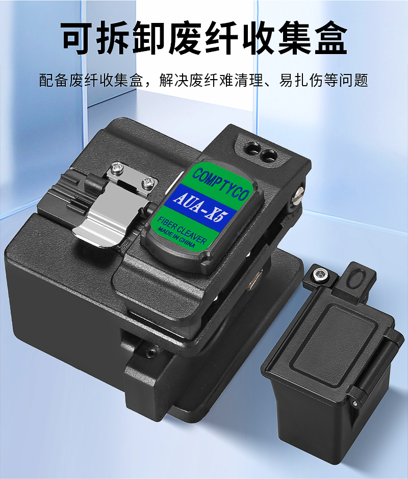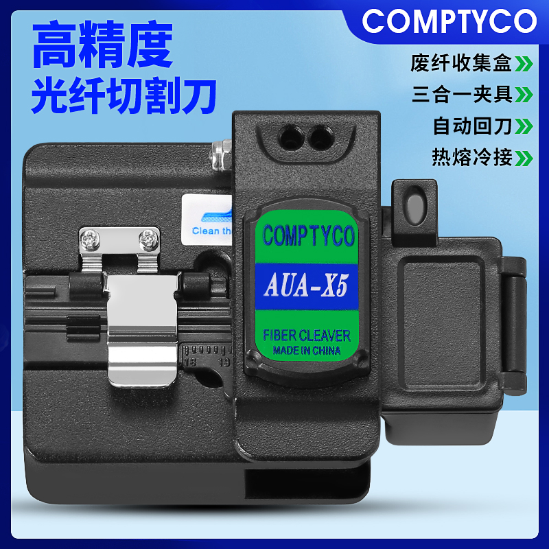 产品名称:COMPTYCO 康普泰高精度光纤切割刀AUA-X5光缆切割刀带废纤盒自动回刀 三合一夹具冷接热熔通用