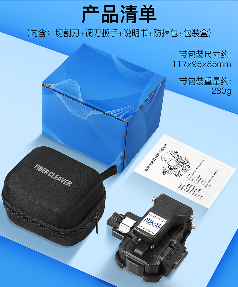 产品名称:COMPTYCO 康普泰AUA-X6光纤切割刀熔接机切刀按压式一步切割刀带废纤盒 16点面刀片