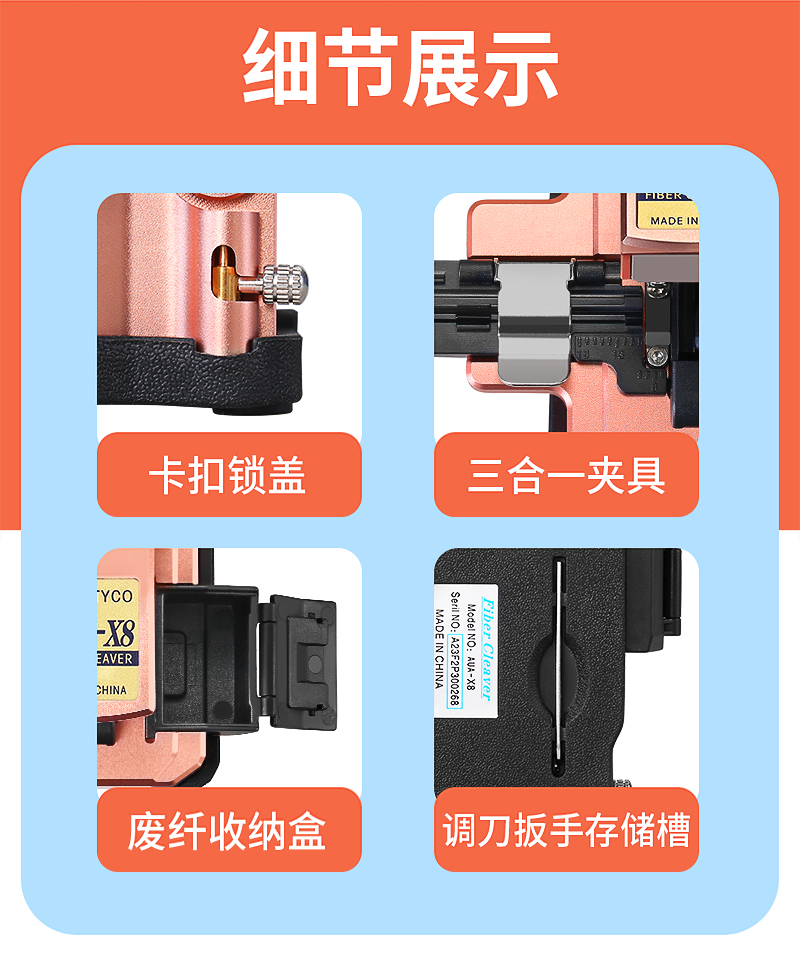 产品名称:COMPTYCO 康普泰AUA-X8高精度光纤切割刀全自动按压式一步刀熔接机割刀 冷接热熔通用 玫瑰金色