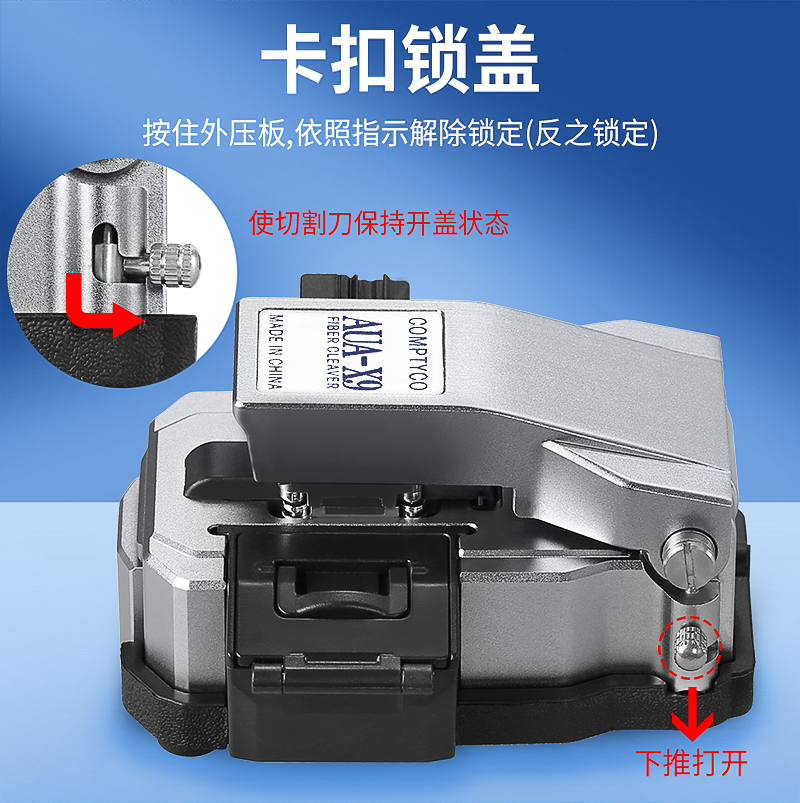 产品名称:康普泰 高精度AUA-X9光纤切割刀皮线光缆切割器熔接机切刀按压式带废纤盒