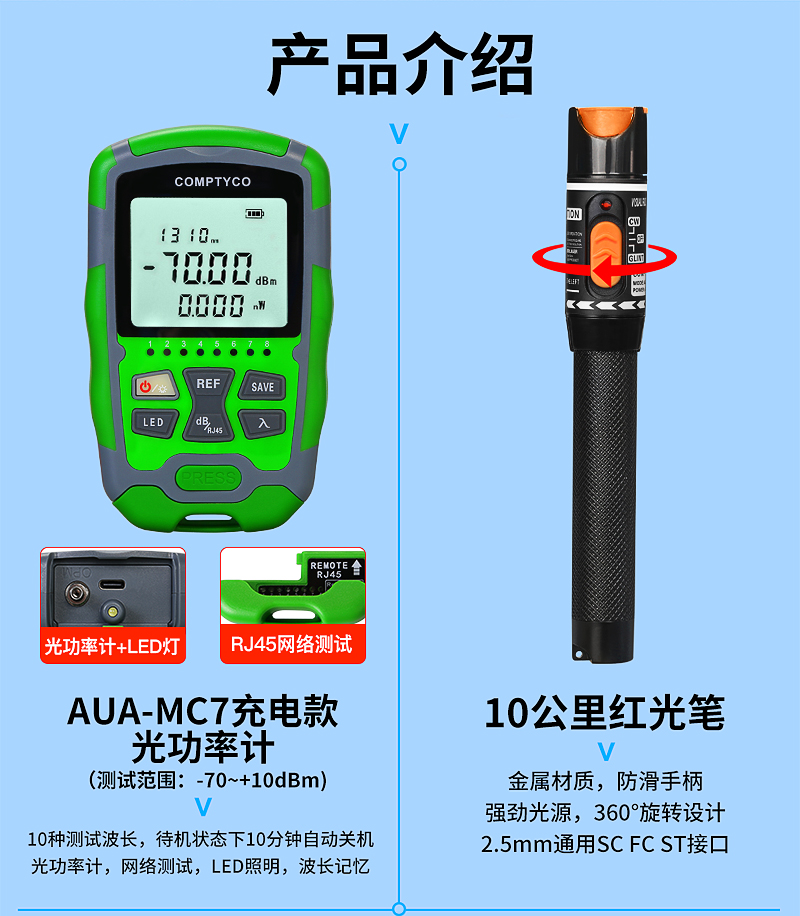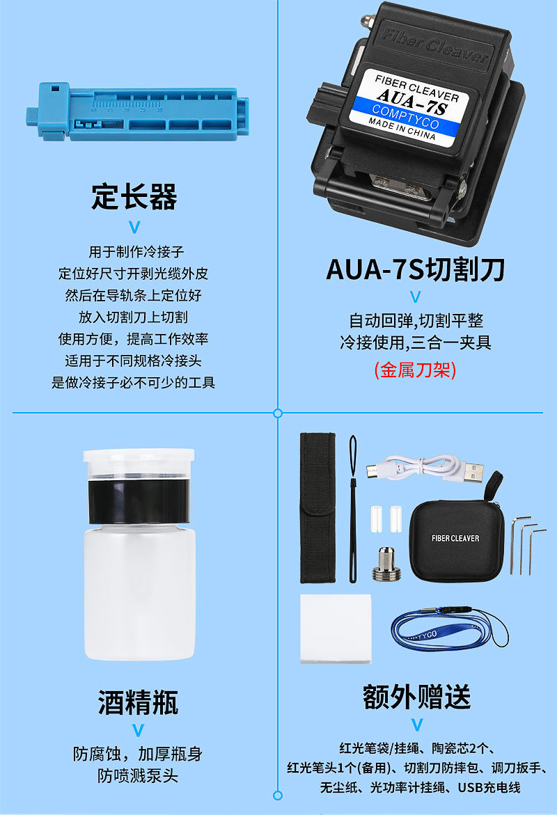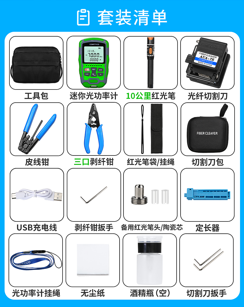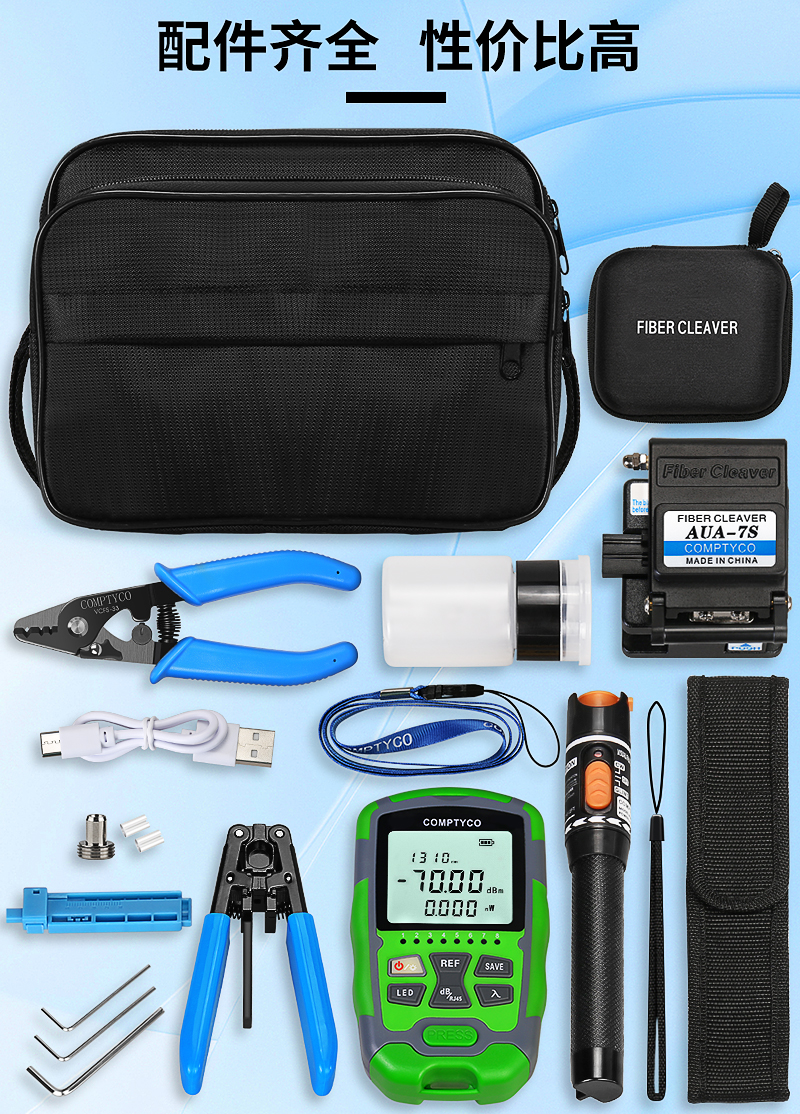 产品名称:康普泰 迷你10波长三合一充电AUA-MC7/MC5光功率计光纤冷接工具包 光纤切割刀剥纤钳剥线钳套装
