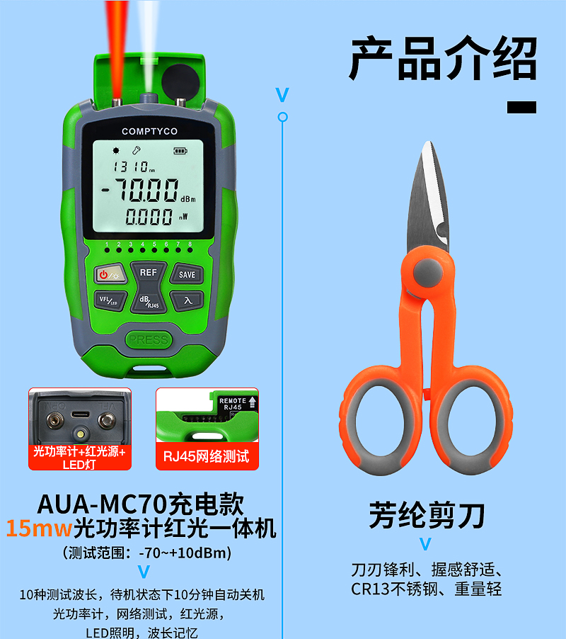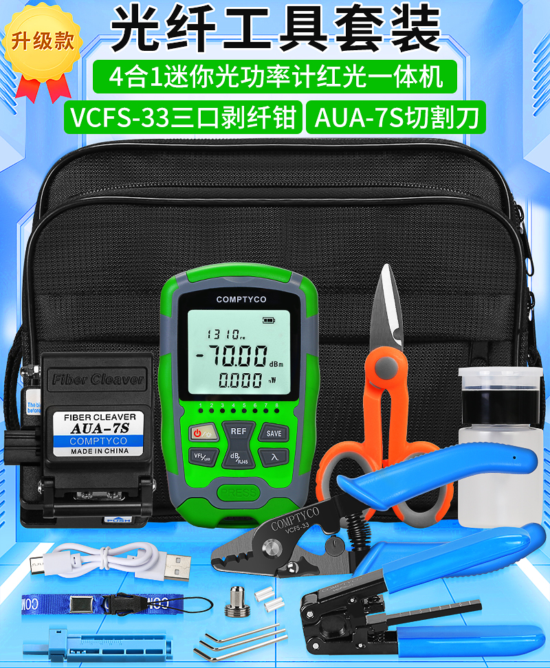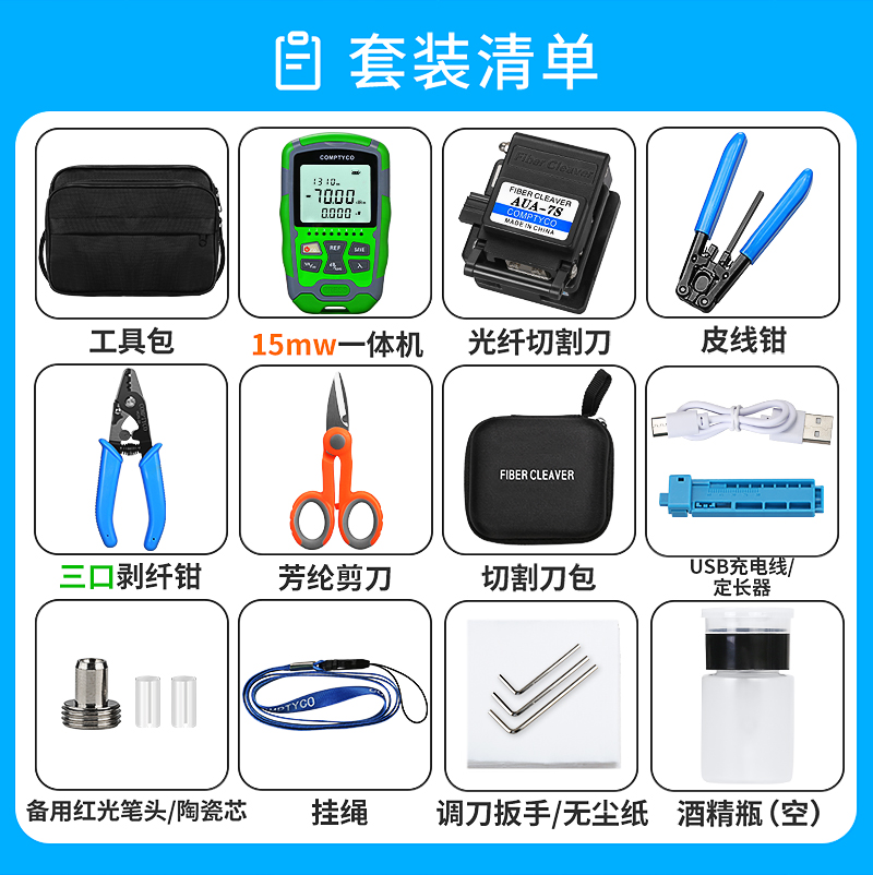 产品名称:COMPTYCO 康普泰光纤冷接工具包 光纤切割刀剥线钳剥纤钳15MW四合一光功率计红光一体机 -70~+10dBm/-50~+26dBm可选 充电款