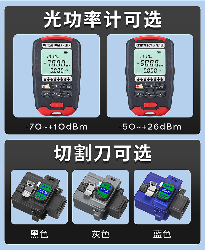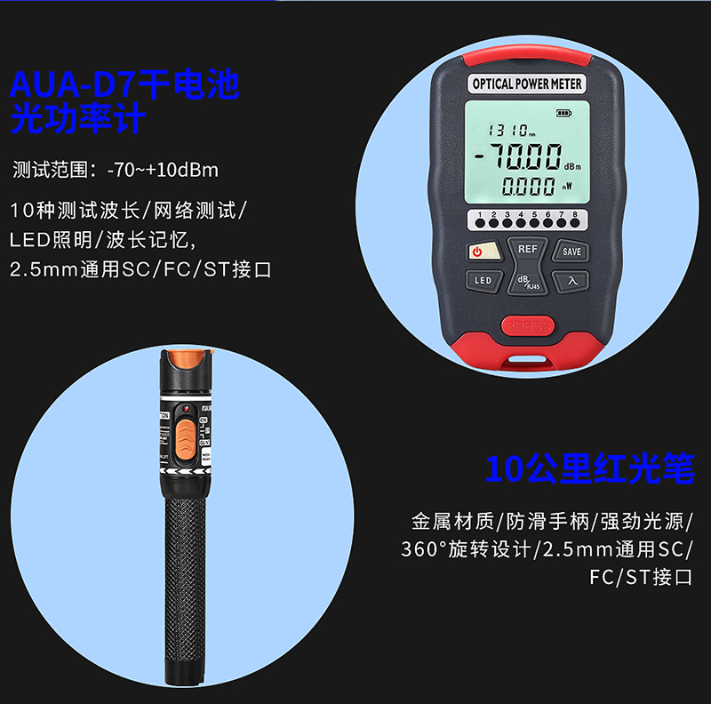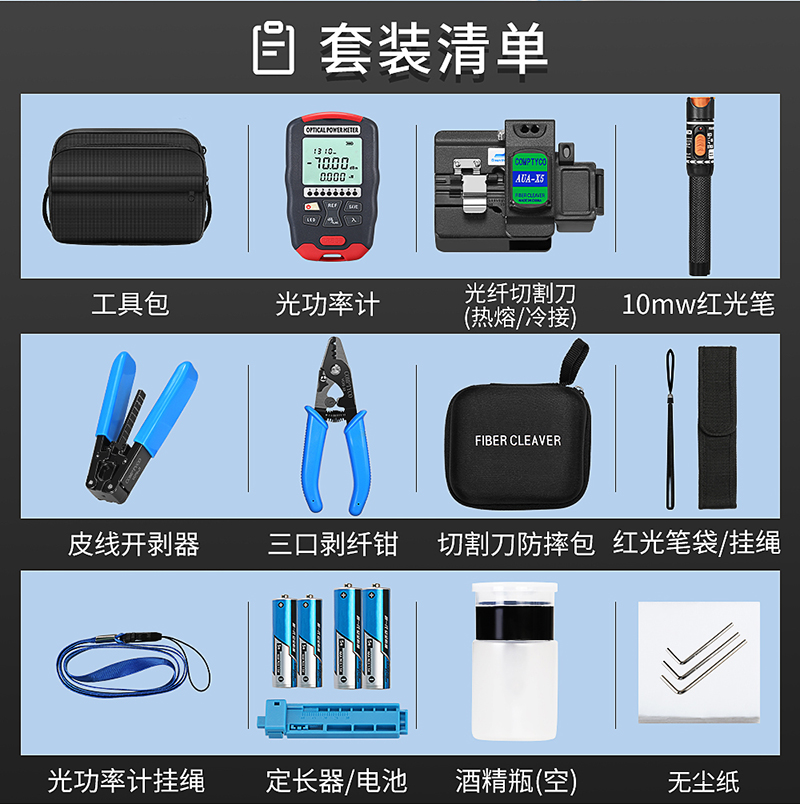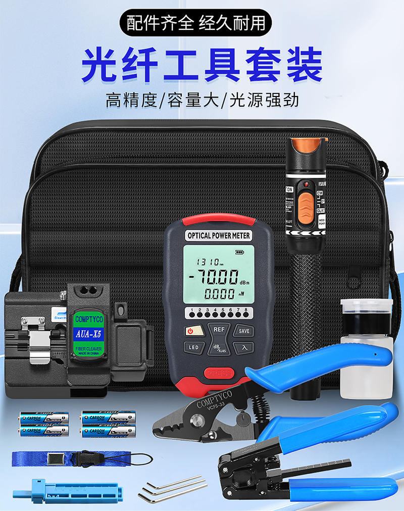 产品名称:康普泰 5G高精度迷你10波长三合一AUA-D7/D5光功率计光纤热熔冷接工具包套装 光纤切割刀剥纤钳剥线钳套装