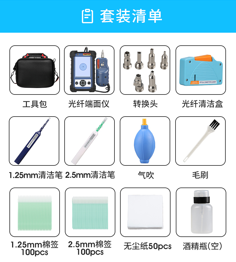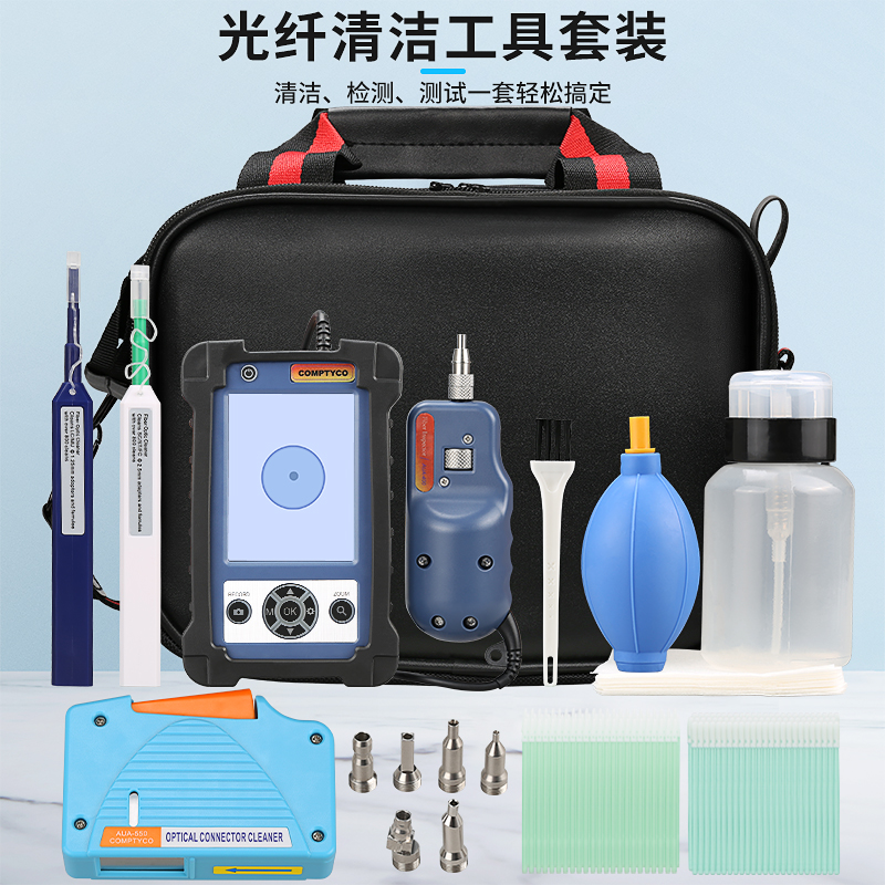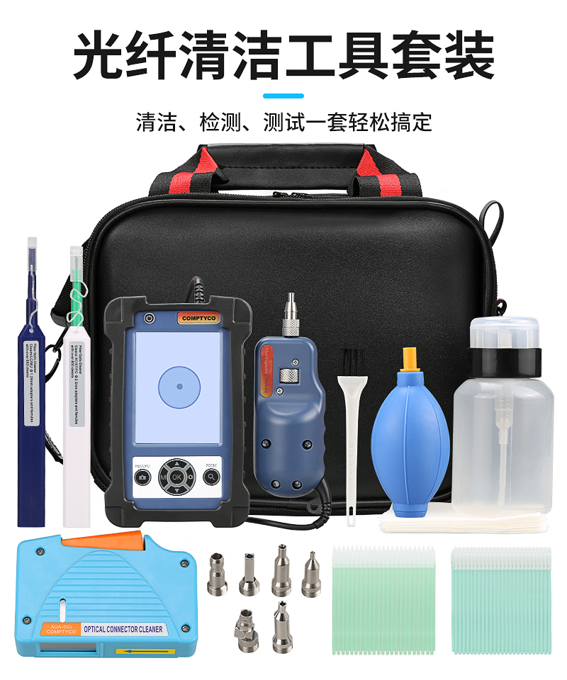 产品名称:康普泰 光纤清洁工具包11件套套装光纤端面检测仪配APC头 400倍光纤清洁笔清洁盒