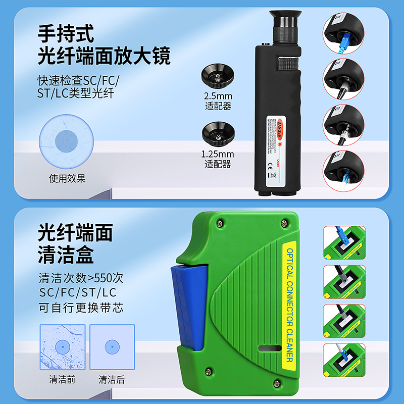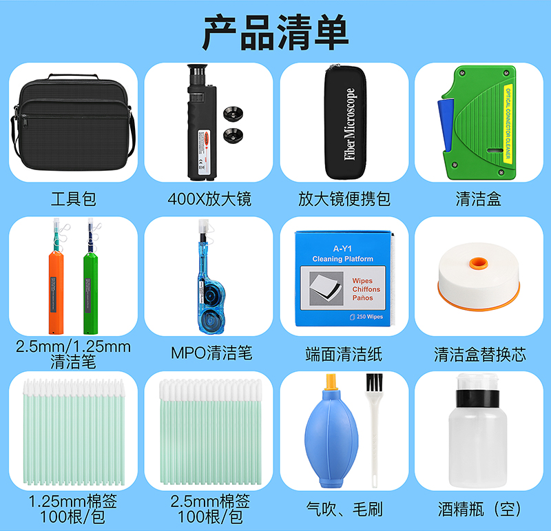 产品名称:COMPTYCO康普泰 光纤清洁工具包套装14件套 400X光纤放大镜 光纤端面MPO清洁笔 清洁盒