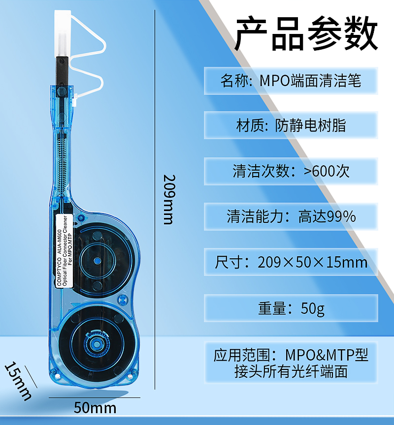 产品名称:COMPTYCO康普泰 MPO光纤清洁笔 光纤跳线快速擦拭端面清洁法兰 适用于MPO/MTP接口适配器光模块光纤清洁器