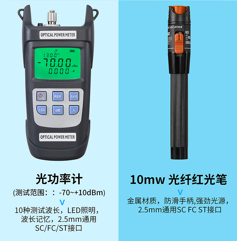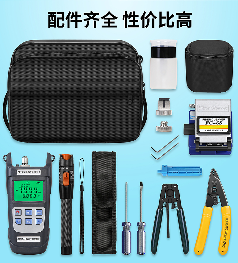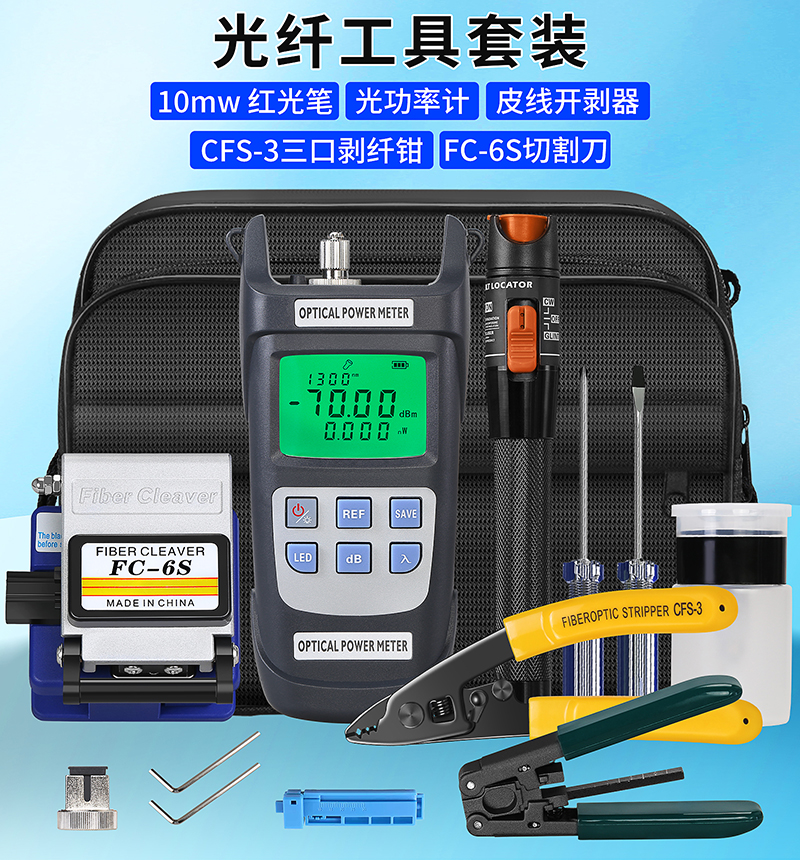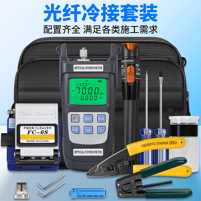 产品名称:COMPTYCO FC-6S光纤切割刀光纤冷接工具套装 工具包红光笔光功率计三口米勒钳皮线开剥器螺丝刀