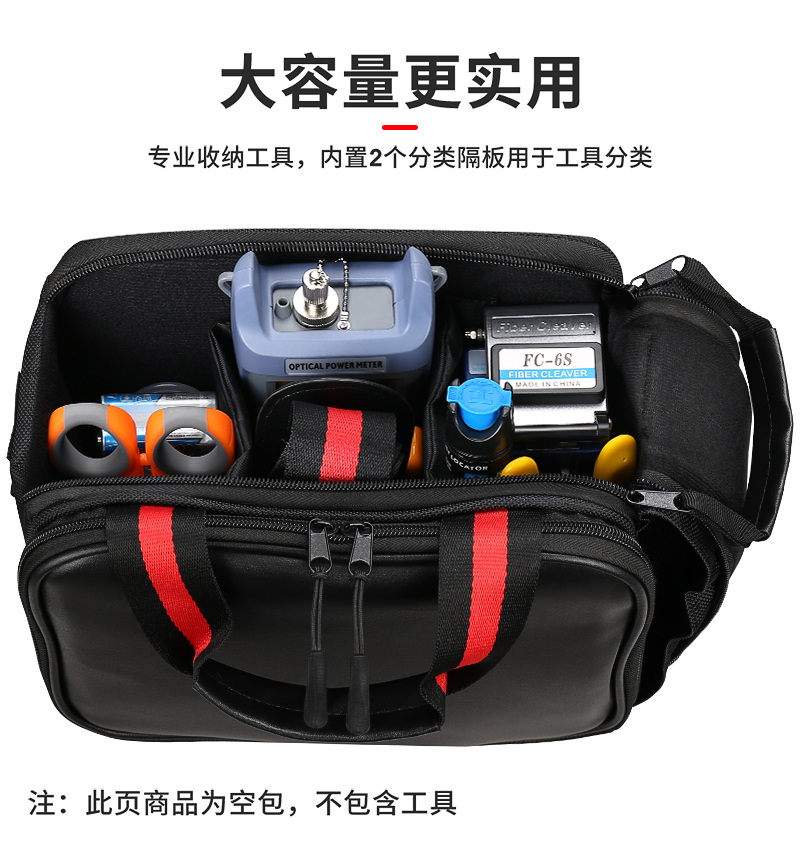产品名称:光纤冷接工具包 光功率计红光笔切割刀套装背包挎包25.5*14.5*20cm 空包