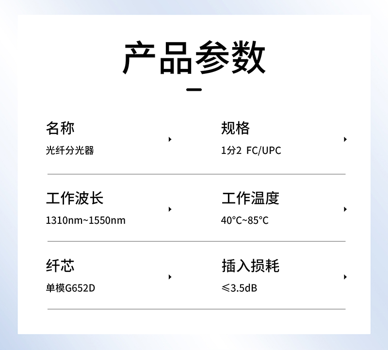 产品名称:康普泰 FC/SC UPC光纤分路器拉锥式1分2光纤入户冷接线器SC APC网络级