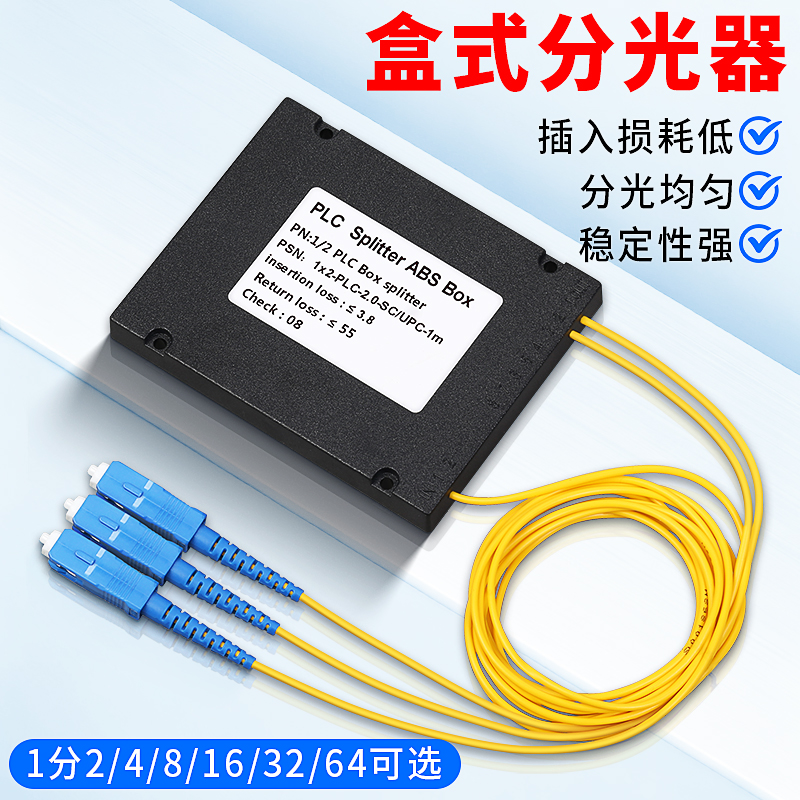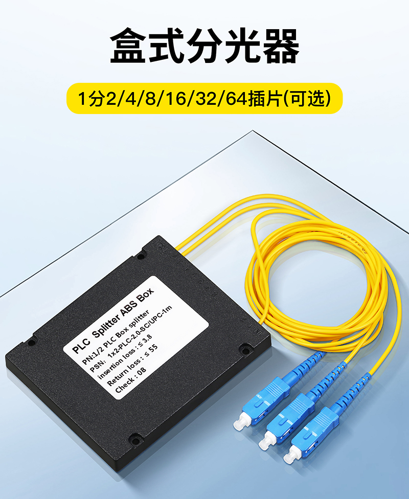产品名称:康普泰 1分2盒式分光器1分2/4/8/16/32/64尾纤式分光器SC UPC/APC网络级