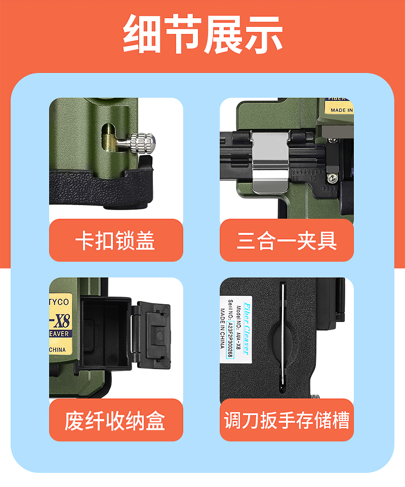产品名称:COMPTYCO 康普泰AUA-X8全自动按压式一步刀高精度光纤切割刀熔接机割刀 冷接热熔通用 军绿色