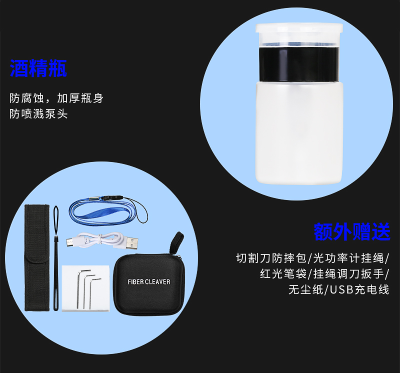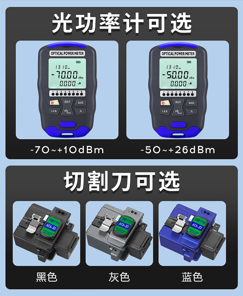 产品名称:COMPTYCO 康普泰光纤热熔冷接工具包套装 5G高精度迷你10波长三合一AUA-DC7/DC5充电光功率计 光纤切割刀剥纤钳剥线钳套装