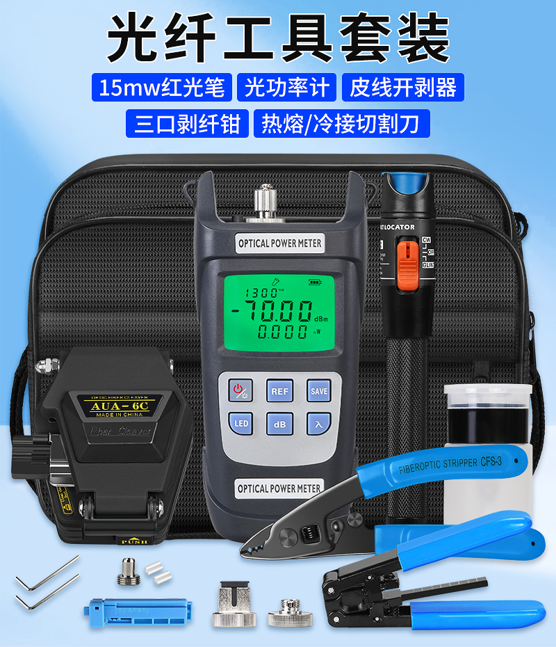 产品名称:COMPTYCO 冷接热熔光纤工具套装配套工具包光纤切割刀红光笔光功率计米勒钳开剥器