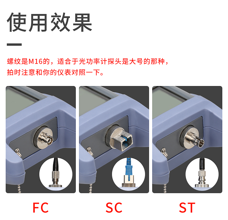 适用范围:螺纹是M16的,适合于光功率计探头是大号的那种,拍时注意和你的仪表对照一下。