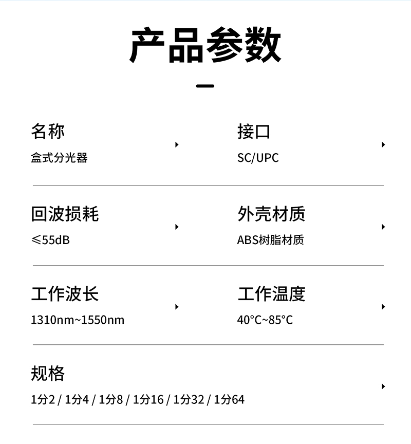 产品名称:康普泰 1分2盒式分光器1分2/8/16尾纤式分光器SC UPC/APC网络级