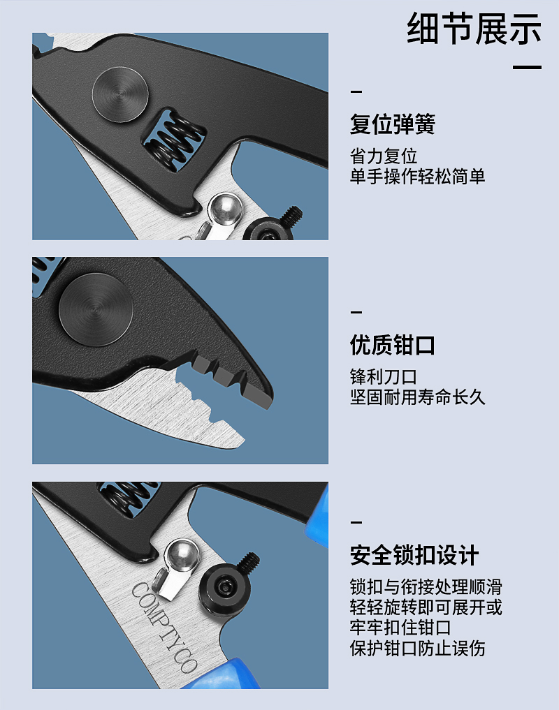 产品名称:康普泰 VCFS-3光纤剥线钳剥纤钳三口钳光纤涂覆层剥离钳