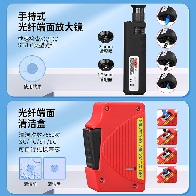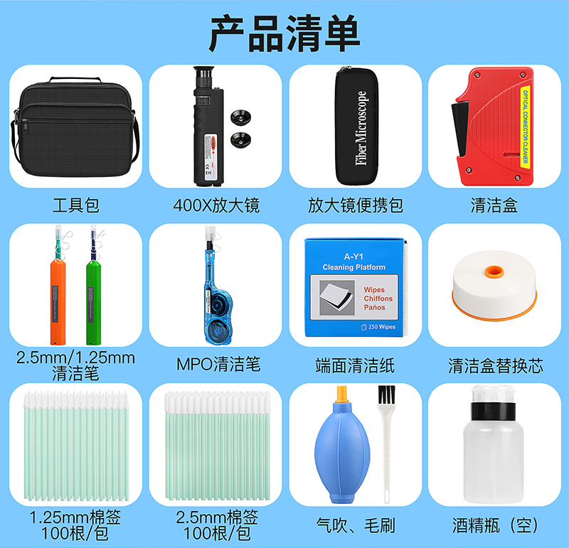 产品名称:COMPTYCO康普泰 光纤清洁工具包套装14件套 400X光纤放大镜 光纤端面MPO清洁笔 清洁盒