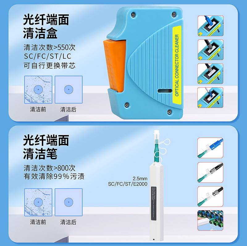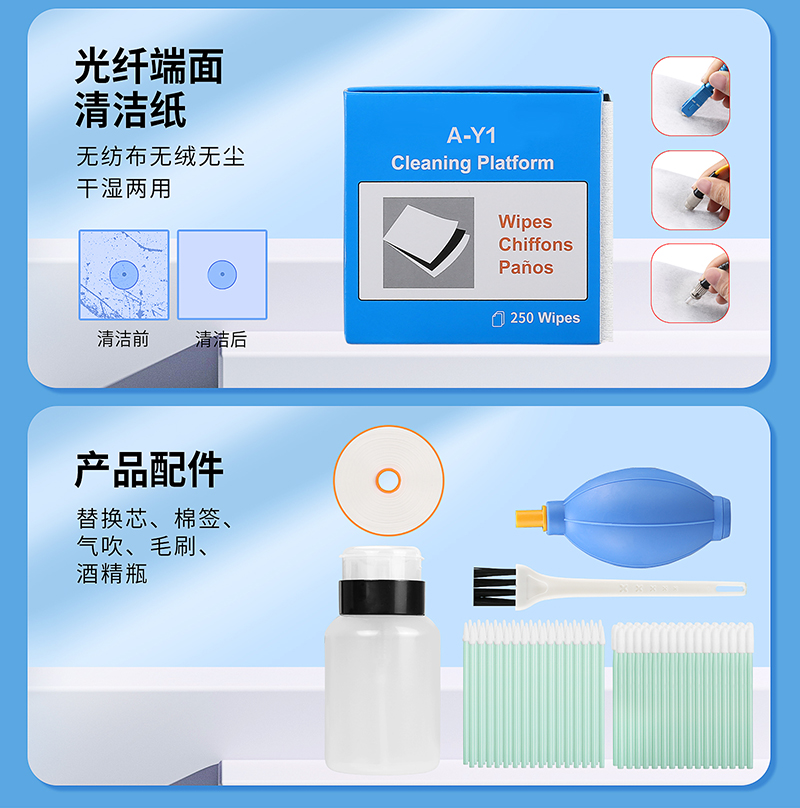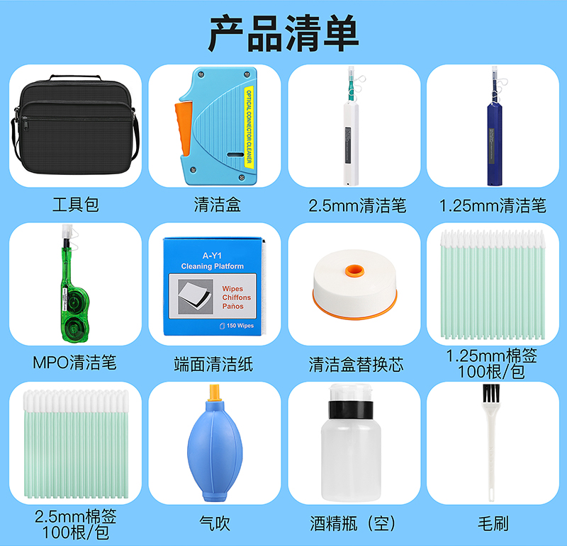 产品名称:COMPTYCO康普泰 光纤清洁工具包套装12件套 MPO光纤清洁笔 1.25/2.5mm棉签 光纤清洁盒无尘纸