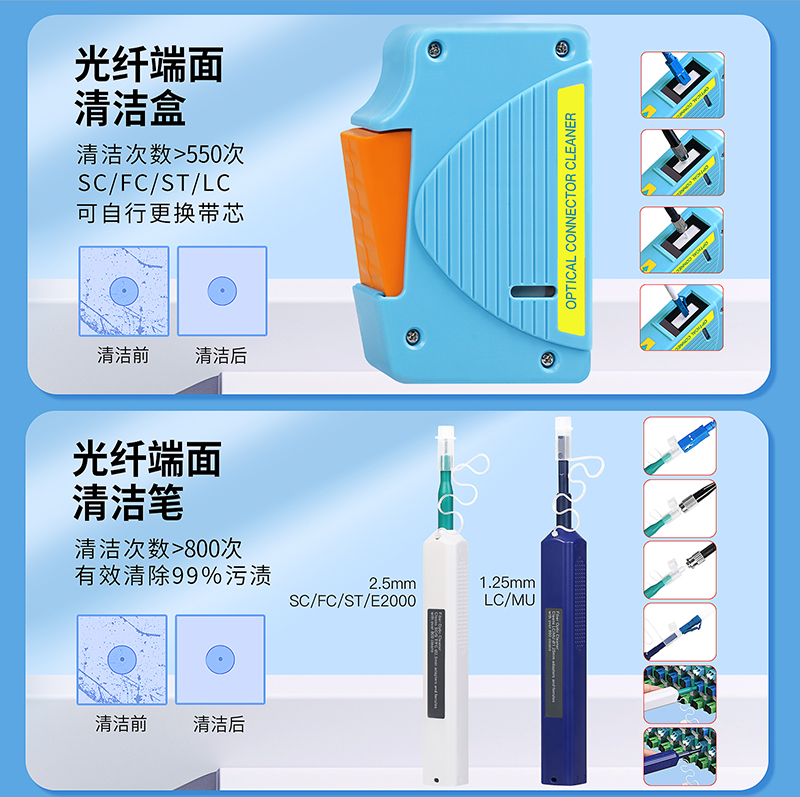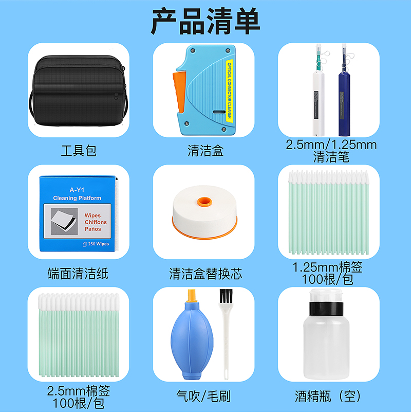 产品名称:COMPTYCO康普泰 光纤端面清洁工具包套装11件套 光纤清洁盒 光纤清洁笔1.25/2.5mm棉签 端面清洁纸