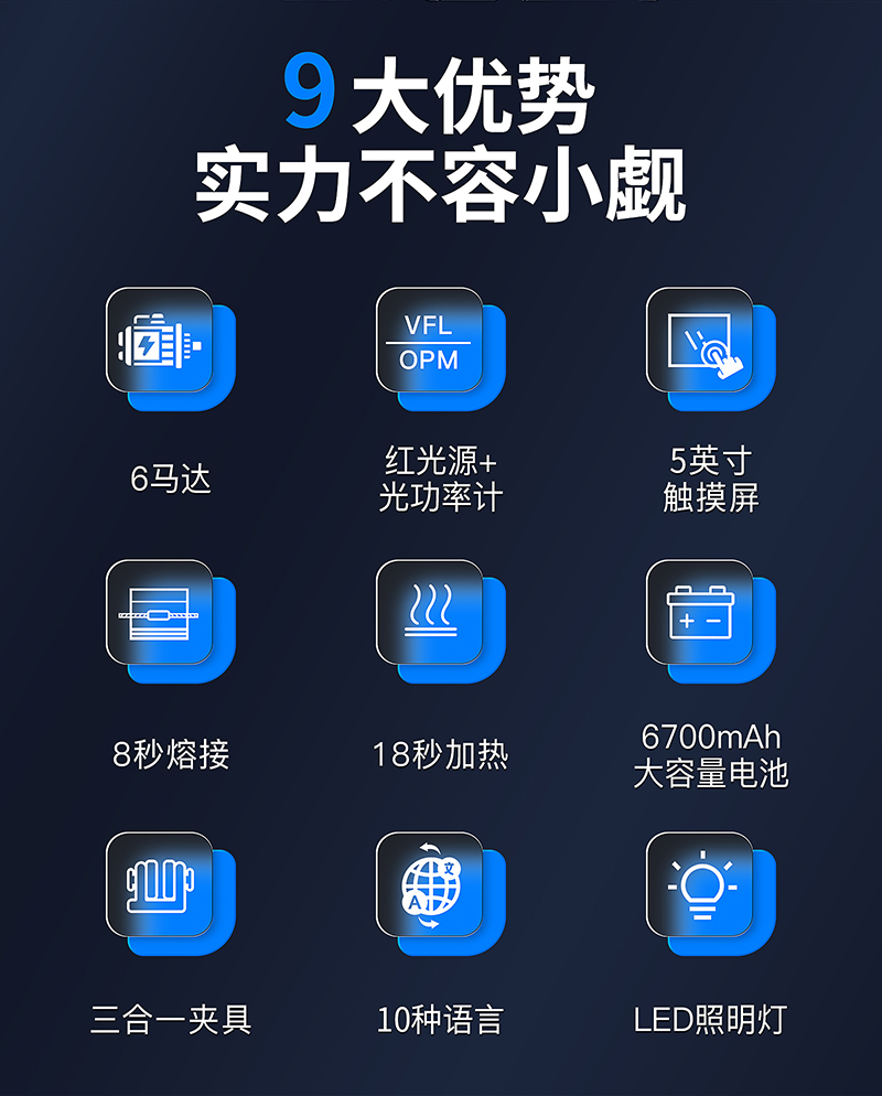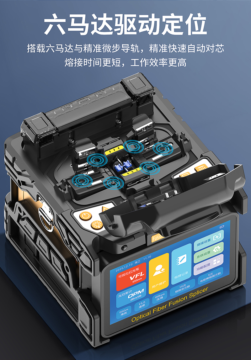 产品名称:全自动六马达光纤熔纤机A-10皮线光缆跳线尾纤热熔机多模单模光纤熔纤机